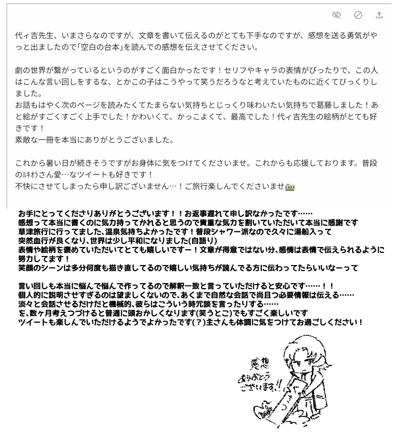 空白の台本の感想、大変励みになっております!!!