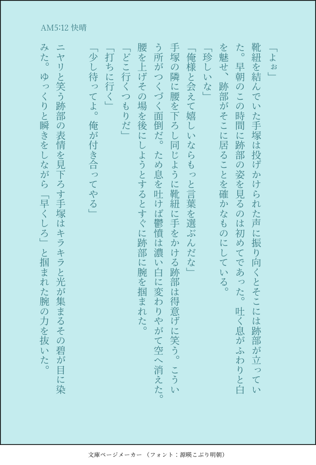 わらび☆quiet followDONE『AM5:12 快晴』 Tap to full screen (size:630x928).Repost is prohibited わらびDONE2024.11.22(遅刻) わらびDONE『鍔迫り合い』 わらびDONE『終演』永遠はあるけど試合は終わるものです。 わらびDONE移植分キスしてる時にめっちゃ見てる塚の話 わらびDONE『AM5:12 快晴』 わらびDONE『溢れる』(跡視点)ぬるいですがR18作品です。18歳未満の方の閲覧を禁止しています。pass:18↑? recommended works 後行ジクDOODLE 4 sashimiiangDOODLE레이카오 POI10998571DOODLE暇が謝った kakitaineDOODLEさくすお🔞ほぼ顔だけどいたしてるはじめて(2回目も3回目も同様)を1000通り読みたいとっくに他の人のことなんて考えられないんだけど、夢中になって他のことに手がつかなくなる的な意味で…20250113 少し修正😇18歳↑?yes /no 半人前道化師DOODLE我々は厄介事に愛されている 現行未通過❌やってて楽しかったロール落書き。きゃっきゃ 白岩さんDONEキャラシ完成 pancake_linkDOODLE思慕と伺いましたので、全肯定してくれると思うんスよ。何をしても、何があっても利吉さんは はる☃DOODLE獅子王 5 Alra0034MENUCoC「探索者、逃走中!」通過報告SSKP/:あるら狐鞠 緋花/只人英雄PL:あめじのなさん枚方 祐禅/穂摘 静空PL:えんびさん乙羽/目良 細雪PL:タイムラピスさん嵯峨根 華忍/周宝 長月PL:つばささん茜 累莵/草河 露乃PL:Miyaさん千波 絃蘭/蓮見 風磨