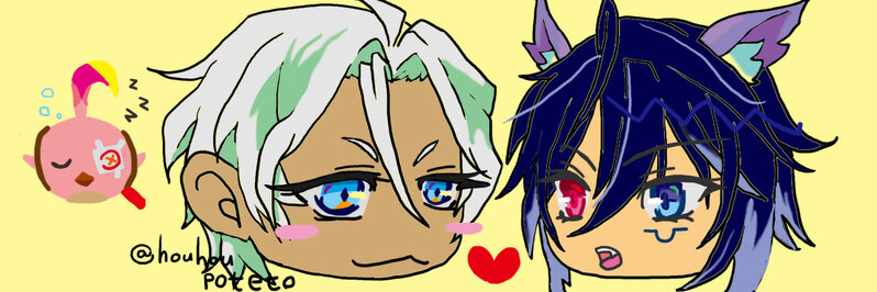暁/houhoupoteto☆quiet followDOODLEオロイフ🦇🩺 Tap to full screen (size:1500x500).Repost is prohibited Let's send reactions! freqpopularsnackothersPayment processing Replies from the creator Follow creator you care about!☆quiet follow 暁/houhoupotetoDONEオロイフ/🦇🩺❌アイリス※アイテムの勝手な捏造※なんにもわからないファ※唐突なたいちょ最近ばあちゃんが花言葉にハマっている。 イファが仕事中、カクークが休みの日はもっぱら二人でばあちゃんの話を聞きに来ていた。 その中でカクークが気になった花。 それを探しに今オシカ・ナタに来ている。 「うーん、普通の枯れ紫菖しか見当たらないな」 「きっとある!」 「ふふ、イファ喜ぶな」 普通のアヤメであれば稲妻に生息しているようだけど、流石にそこまではいけないから。 でもここなら枯れてるけど紫のアヤメは咲いていて、ばあちゃんによれば稀に白色が咲くらしい。 カクークが探している間に、簡単に隊長に挨拶を済ませて僕も捜索に加わった。 「ん?」 隊長の足元、珍しく枯れていない紫菖が咲いている。 ここ一体の空気はひんやりと涼しくて湿度も高めだ。だからなのだろうか。もしかしたらこのあたりの環境変化によって奇跡が起こっているかもしれない。 1641 暁/houhoupotetoDONEオロイフ/🦇🩺心の隅に。※オロイフカクでイチャつきはありません※ナタの習慣は捏造です白く綿毛のような、ふわりと舞って手のひらで消える。 人間の感覚ってのは記憶に残りやすいっていうが、俺の場合のトリガーはそれで。 圧迫される苦しさ、落として割れた瓶の消毒液の匂い、普段頭の上から降ってくるムトタさんの悲痛な声が耳元で。 「すまない、イファくん…すまない…」と何度も何度も繰り返す声。 たくましい腕で締め付けられる痛みは声に出せず、予想したことさえ言葉にできなかった。 俺の親は死後数日経ってから、他の患者だったと思われる者たちと一緒に見つかった。 わかってる。わかってた。軍医になるってことはこうなるかもしれないって。 成人手前の俺でもわかってたんだ。…それが事実になったら認められないことなんてわからなかったんだ。 5067 暁/houhoupotetoDONEXオロイフセリフリクエスト/🦇🩺18↑?※両片思い※合意なしだが無理やりではない(?)※軽いオホ声、濁点、♡※攻の♡※受の自己開発済※少しでも怪しかったら閲覧非推奨 5922 暁/houhoupotetoDOODLEオロイフワンライ/🦇🩺お題:『ハグ』開催お疲れ様です&ありがとうございます!!「なぁ、最近の悩みっちゃ悩みなんだけどよ……お、すげー長いミミズ」 「悩みなら聞くぞ?……そいつはここの畑の王ミミズだ。返してやってくれ」 「あー、うん……ミミズ王じゃないか?王ミミズだとミミズの種類みたいだぞ」 オロルンとイファは、炎天下の中、畑の雑草を2人で抜きながら器用に2個の会話をしていた。 「ミミズは畑を耕してくれるからな。王様だ。王ミミズだ。よしそろそろ休憩しよう」 オロルンが後半のたいして内容の無い会話を選んで答えたあと、立ち上がり首に巻いていたタオルで汗を拭う。 「…納得いかねぇ」 イファは会話の内容になのか、ミミズに王をつける場所の事なのか、そう呟いてオロルンの後ろをついて行った。 「あぢー水くれ水」 2015 暁/houhoupotetoDONEオロイフ/🦇🩺『やきもち!』※ハモワノレ中の捏造、❌まだいない※カッコいい🩺が書けません※原作中ストーリー破綻は気にしないで下さい(お願い)(詳しいこと記憶から抜け落ちてしまいました)拝啓 ばあちゃん。 フォンテーヌで発見したことがあるので報告です。 俺達は一人でいるとモテるらしい。 …なんてコーヒーを口に含みながら考える。 「苦っ」 別に好きでコーヒーを選んだわけじゃない。メニューをみたらよく分からないおしゃれそうな名前が連なっていてどんなものなのか想像ができなかったから、知ってるものを注文しただけ。 ナタならテーブルに使うであろう調味料が置いてあるから特に考えずに「ストレートで」とか頼んだけど何も置いてなくて砂糖入れられなくてしょうが無く苦いコーヒーを少しずつすすっている。 初めての海外、知らない街、青い空、雰囲気のいいカフェ いい気持ちになりたいところだがカクークはパレメルモニアって所で取り調べ受けてて気が気じゃないしオロルンはなんかの作戦に付き合ってていねぇし内心ソワソワして仕方ないが、そもそもそのソワソワを表に出した所でオロルンもカクークもいないから相手してくれるやつがいない。 5453 暁/houhoupotetoDONEオロイフワンライ/🦇🩺お題:『タトゥー』※朝チュン描写あり(えっちではない)※迷煙の事や紋様の事など捏造です※カクークお休み中つつ、と目の前の線を指でなぞる。それは真っすぐだったり、三角だったり、丸であったり。 「ふふ、くすぐったいよイファ」 その線の持ち主がこちらを向いて目を細めている。 「悪ぃ、起こしちまったか」 「うん、そんなに熱心に見つめられたら起きてしまった」 「お前…」 心がもぞもぞと痒くなり、素足をすり