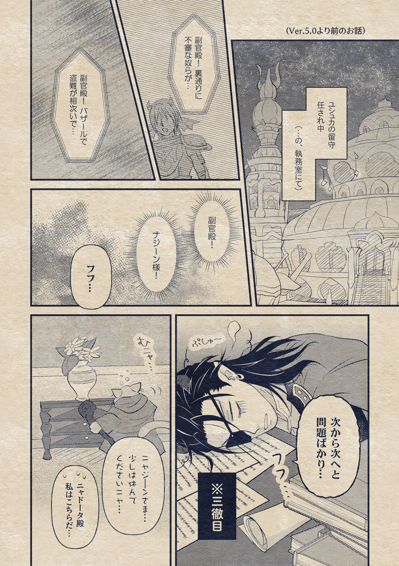 ナジーンさんと執務室のねこまどう達(+ちょこっとユシュカ)のゆる漫画です。