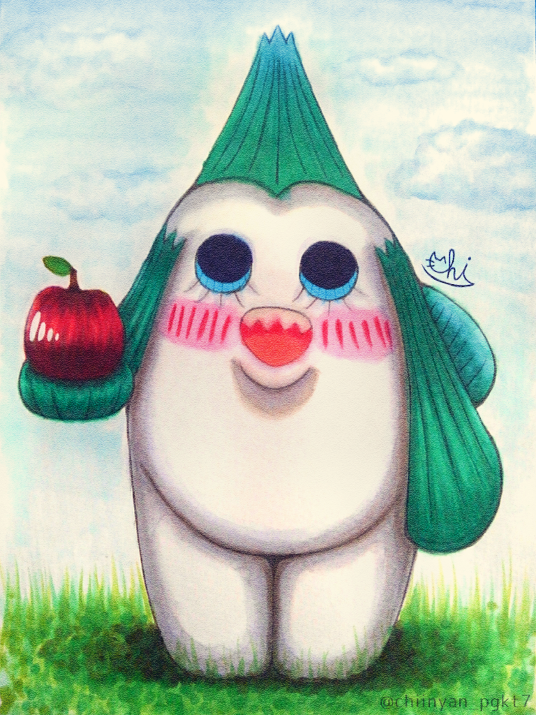 【一次創作】りんごを手にした魚人ちゃん🐟🍎久々のアナログ絵🎨