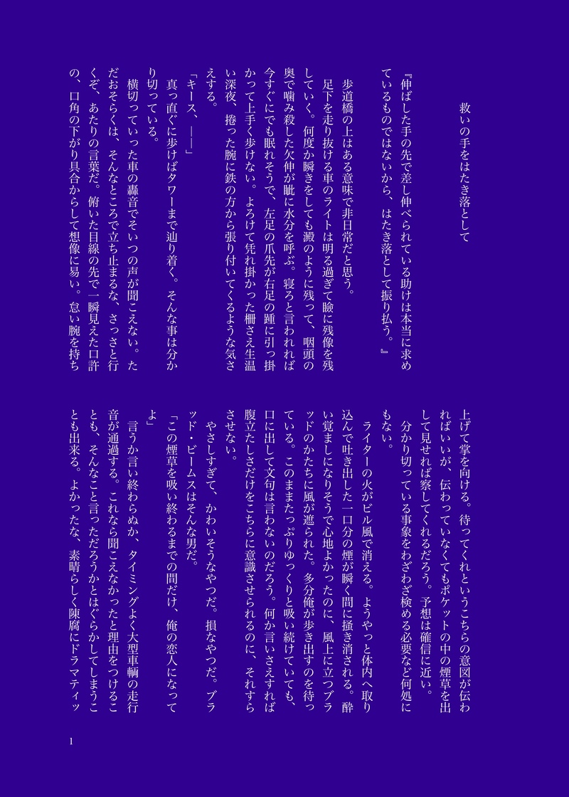 佳芙司(kafukafuji)☆quiet followMOURNING親友が死んだと思ってるキース×親友が死んでない事を伝えてないブラッドのキスブラが一番好きだなと思いながら書いてピクシブに上げてたやつ。 #キスブラ kissBra show all(+2 images) Tap to full screen (size:2125x2976).Repost is prohibited Let's send reactions! freqpopularsnackothersPayment processing Replies from the creator Follow creator you care about!☆quiet follow 佳芙司(kafukafuji)MOURNING下戸の見た幻覚から生じた虚無。二人きりの夜に酒飲んでる話。【パス:三次元のそういうやつアルファベット4文字、無敵№、天才最初期№】 8953 佳芙司(kafukafuji)SPUR ME存在しない幻覚による存在しない男が文句を言いつつ先輩の言いなりに仕事する話。【パス:三次元のそういうやつをアルファベット4文字】 2549 佳芙司(kafukafuji)SPUR ME存在しない幻覚による存在しない男達の不穏な雰囲気のランチタイムの話。【パス:三次元のそういうやつをアルファベット4文字】 2445 佳芙司(kafukafuji)DOODLE存在しない幻覚による存在しない事件の翌日、存在しない愉快な仲間たちの話。【パス:三次元のそういうやつをアルファベット4文字】 2913 佳芙司(kafukafuji)TRAINING存在しない記憶と幻覚の交差する路地裏の話。【パス:三次元のそういうやつをアルファベット4文字】 2474 佳芙司(kafukafuji)DONE存在しない幻覚による存在しない事件の、存在しない関係性の幻覚の後編話。【パス:三次元のそういうやつをアルファベット4文字】 9019 related works ふじさわSPUR ME3/25キスブラのオンリー発行予定の新刊サンプルです。にゃんとにゃんB5正方形・36ページごつサブ由来の謎の生き物にゃんと暮らすキスブラの本です。特殊な設定なので大丈夫な方どれぐらいいるか部数参考アンケートツリーにつなげておくのでご協力お願いいたします。 11 佳芙司(kafukafuji)MOURNING前にピクシブに投稿してたやつ 1817 みぃ☆DONE2020→2021 甘々キスブラで始まります♡第8回キスブラワンライ「年の瀬」からお読みいただけると、より楽しめると思います! 3894 ふじさわDONEキスブラ漫画です。一個前の光るゴムのやつが続きました。このまま流れるのはさすがに🍺さんかわいそうだなって思ったので。例によって真っ最中だけどすけべじゃないのでワンクッション、その辺込みで大丈夫な大人の方のみどうぞ。🍣さんこんぐらいで笑わんだろとか思いつつ3枚目がやりたかったので。 5 edamame2mamekoCAN’T MAKE(キス)ブラちょっと卑猥なのでこちらに。こんなのがもっとサラッと描けるようになりたい。 *雪華*DONEキスブラ版ワンドロライ第15回でのお題から『本音』『バレンタインデー』を使って書いた話です。バレンタインデー限定のホームボイスネタが含まれます。 2045 みぃ☆DONE第8回キスブラワンドロライお題は『年の瀬』でキースの家を大掃除する話。甘々キスブラ読み切りですが、続きっぽいものを1日と3日(R18)で書く予定。 3484 ふじさわPROGRESS12/15合わせの女体化百合のにょたゆりキスブラ本の短いのwebオンリーで載せるつもりが間に合わなかった奴です…全員先天性女体化です。苦手な方はご注意ください。 4 sushikoDONEお下品でごめんなさい…… recommended works ときねDONEフリートの短文です。陣章ともキスブラとも取れたやつです。 2 みぃ☆DONE2020→2021 甘々キスブラで始まります♡第8回キスブラワンライ「年の瀬」からお読みいただけると、より楽しめると思います! 3894 ふじさわDONEご機嫌酔っ払いとお迎えアクリルクリップバッジにするかもしれないやつ。 4 佳芙司(kafukafuji)MOURNING前にピクシブに投稿してたやつ。20201212 1491 佳芙司(kafukafuji)MOURNING出来上がってるオスアキのオスカーが昨夜の名残をジェイに見られてしまう的なアレ。 1885 b_kawa_hMOURNINGWebオンリー合わせのキスブラ漫画①です。 16 mrst_horiDONEジェイアシュSS 3482 佳芙司(kafukafuji)DONEこちらのアンケート結果【https://twitter.com/kafukafuji/status/1522554377923620865?s=21&t=2GIpbQxVqsX9lfYCnepBbA】「わざと見せつける」を元にして書いたグラエマ+ヴィクトル。本人らは故意とは思ってないけど周囲がそう感じる時あるよね、と。 2661 ふじさわDONE5/28キスブラご飯オンリー合わせの新刊WEB版です。付き合い始めて「和食を作って」と言われてもいいように準備してるキさんと言わないブさんとのお話です。いろいろと思い出捏造してます。ルーキー時代じゃなくてアカデミー時代でも良かったけどルーキーの時のが食材等の自由が効いてリクエスト受けるかなって思ったので…( ˘ω˘ )紙版の描き下ろし分はこのお話のその後のランチタイムです。 26