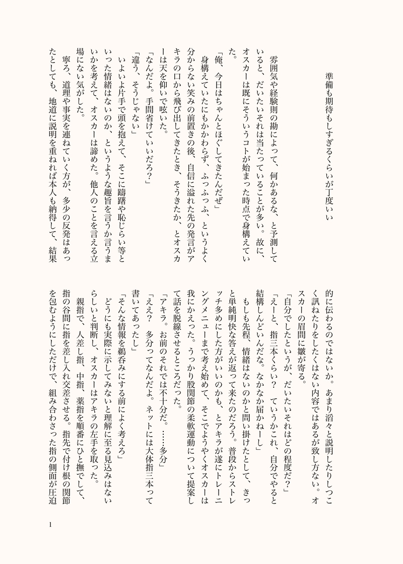 佳芙司(kafukafuji)☆quiet followMOURNING「気を利かせて受が自分で準備してきたけど攻のサイズ的に準備不足と判断される」というネタで書いたオスアキ #オスアキ show all(+4 images) Tap to full screen (size:2125x2976).Repost is prohibited Let's send reactions! freqpopularsnackothersPayment processing Replies from the creator Follow creator you care about!☆quiet follow 佳芙司(kafukafuji)MOURNING下戸の見た幻覚から生じた虚無。二人きりの夜に酒飲んでる話。【パス:三次元のそういうやつアルファベット4文字、無敵№、天才最初期№】 8953 佳芙司(kafukafuji)SPUR ME存在しない幻覚による存在しない男が文句を言いつつ先輩の言いなりに仕事する話。【パス:三次元のそういうやつをアルファベット4文字】 2549 佳芙司(kafukafuji)SPUR ME存在しない幻覚による存在しない男達の不穏な雰囲気のランチタイムの話。【パス:三次元のそういうやつをアルファベット4文字】 2445 佳芙司(kafukafuji)DOODLE存在しない幻覚による存在しない事件の翌日、存在しない愉快な仲間たちの話。【パス:三次元のそういうやつをアルファベット4文字】 2913 佳芙司(kafukafuji)TRAINING存在しない記憶と幻覚の交差する路地裏の話。【パス:三次元のそういうやつをアルファベット4文字】 2474 佳芙司(kafukafuji)DONE存在しない幻覚による存在しない事件の、存在しない関係性の幻覚の後編話。【パス:三次元のそういうやつをアルファベット4文字】 9019 related works yurina_sDONE4/10(枚数)サウスでアキラカワイイカワイイしてます 4 佳芙司(kafukafuji)MOURNING前にピクシブに投稿してたやつ。20201212 1491 佳芙司(kafukafuji)DONE本当は本にしたかったけど書く気力を失った「ホテルで初夜に臨むオスアキ」の本文の方 6 佳芙司(kafukafuji)PROGRESSルーキー研修が終わった6年後という設定のパラレルワールドというか近未来パロディというかなんかそういうラブコメ話になる予定の冒頭部分。 1443 bossccoDONEまだくっついてないオスアキ 708 bossccoMAIKING途中まで 2841 佳芙司(kafukafuji)MOURNING前にピクシブに投稿してたやつ 1708 yurina_sDONE熱烈!炎のクッキング!7/10続きです~ 3 佳芙司(kafukafuji)MOURNINGシャワールームのオスアキ 4 recommended works ときねDONEフリート短文のキスブラ。 2 佳芙司(kafukafuji)MOURNINGシャワールームのオスアキ 4 佳芙司(kafukafuji)MEMOアッシュとジェイのピロートーク会話文。気力が湧いたら地の文とかを書き足す。多分。 351 sushikoDONEキスブラ。痕を付けすぎたのでポイピク行きになりました……!!! syakaika1710DOODLE猫ちゃんのキスブラお風呂編(完) 2 sushikoDONEキスブラ漫画まとめ。pixivにも同じ物を上げています。 42 ふじさわDONE5/28キスブラご飯オンリー合わせの新刊WEB版です。付き合い始めて「和食を作って」と言われてもいいように準備してるキさんと言わないブさんとのお話です。いろいろと思い出捏造してます。ルーキー時代じゃなくてアカデミー時代でも良かったけどルーキーの時のが食材等の自由が効いてリクエスト受けるかなって思ったので…( ˘ω˘ )紙版の描き下ろし分はこのお話のその後のランチタイムです。 26 tamac5124DONE褒められセックス描こうとして何も考えずに思いつくまま描いたら訳わからなった…🤔🤔🤔 o(dnt)DOODLETCOxTDL