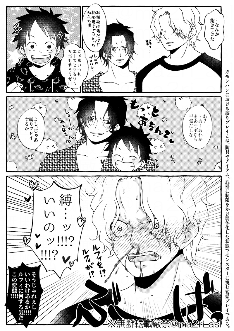 まつり@BOX CULVERT☆quiet followDOODLE【盃兄弟が狩猟解禁したってよ】三兄弟でわいわいモンハンしてる(?)まんが。ゲーム内の用語が多いのと、特にサボの崩壊が著しいので注意。 show all(+2 images) Tap to full screen (size:2150x3035).Repost is prohibited Let's send reactions! freqpopularsnackothersPayment processing Replies from the creator Follow creator you care about!☆quiet follow まつり@BOX CULVERTDOODLE配信以上の衝撃だったkbk…一応ネタバレ?になるのかな?なので見たい人だけどーぞ。Pass→yes/no まつり@BOX CULVERTMAIKING悪ふざけの産物【マジカル・メラ】メラムギ2のアンケートにて投稿した魔法少女ネタ。相変わらず様子がおかしいけど、気が向いたら続けたい。 4 まつり@BOX CULVERTMAIKING悪ふざけの産物【絆戦隊サカズキジャー】全体的に様子がおかしいですし、描きたいところだけを描いてます。 11 まつり@BOX CULVERTDOODLE【盃兄弟が狩猟解禁したってよ】三兄弟でわいわいモンハンしてる(?)まんが。ゲーム内の用語が多いのと、特にサボの崩壊が著しいので注意。 3 まつり@BOX CULVERTDONE2021.8.22~8.29まで行った盃女装『筋肉の壁から弟チラリ』シリーズまとめ。バニーの日から派生しましたが、楽しんでいただけて嬉しかったので、一足先にこちらにまとめます。可愛い格好してる弟を見せたくない兄ズがいろいろ頑張ってるよ。おまけとして、最後に隠されていて見えなかった弟まとめ突っ込んであります。 8 まつり@BOX CULVERTTRAINING予防接種を受けてきたのだけれども、出掛けに浮かんだネタ。忘れなかったらかくって言っちゃったから、練習兼ねて描いた。相変わらずの兄ル。エールが少女漫画。 5