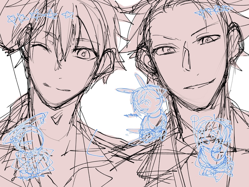 ラフ2枚。ガチャ祈願とデートプランAtoZなちぁきさん