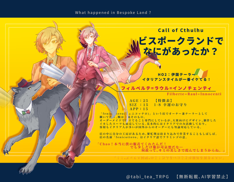 tabi_tea_TRPG☆quiet followDONEビスポークランドでなにがあったか? HO2フィルベルテ=ラウル=インノチェンティ #旅茶宅 #旅茶宅立ち絵 show all(+1 images) Tap to full screen (size:3857x3000).Repost is prohibited Let's send reactions! freqpopularsnackothersPayment processing Replies from the creator Follow creator you care about!☆quiet follow tabi_tea_TRPGDONE※獣化NPCも描いたよ 2 tabi_tea_TRPGDONE狂気山脈 HO2-B雷坂 長門 tabi_tea_TRPGDOODLE真夏の風の果てバレメモ書きの隅に描いた九重谷 tabi_tea_TRPGDONE真夏の風の果て HO2九重谷 官弥 tabi_tea_TRPGDOODLE裏に載せてたごだ絵のまとめ(CP要素、獣化、等々あります) 13 tabi_tea_TRPGPROGRESSゴダルカ自探達の立ち絵(未完)卓が終わる前に完成しないと思われるため、出すだけ出します… 2 related works tabi_tea_TRPGDONE白野夫妻の立ち絵よ〜SpecialThanks✨霖薫のラフを生み出してくれたのだ。感謝…🙏 2 tabi_tea_TRPGDONE胡桃炸裂症候群 HO刑事小鳥谷 夜一 tabi_tea_TRPGDONEステガノグラフィHO1 蛇塚あすか tabi_tea_TRPGPROGRESSゴダルカ自探達の立ち絵(未完)卓が終わる前に完成しないと思われるため、出すだけ出します… 2 tabi_tea_TRPGDONE2024年の立ち絵まとめ一部、獣化や他PL探索者の立ち絵も含まれます。 2 tabi_tea_TRPGDONEビスポークランドでなにがあったか? HO2フィルベルテ=ラウル=インノチェンティ 2 tabi_tea_TRPGDONE真夏の風の果て HO2九重谷 官弥 tabi_tea_TRPGDONE我厄HO2、虎谷健吾 tabi_tea_TRPGDONE鰯と柊 HO鰯 折部はやと recommended works 野百合梓DONE【糸师洁|all洁】骨肉血亲1.6w+ 17 ぴろ🐍DONEモブランド4モブジャミ…??? 4 脱发剂兜售商DOODLE民国车怀 6 FutagunAIDONE #ゴダルカ旅薬班薬袋さんと旅茶さん大変申し訳ございません!!!!!(土下座)さすがに表に出すのはどうだろうとなったのでこう……。 2 minai_TRPGMEMOごだ自探 テンプレ置き場なんか諸々解釈変わってるかも 雰囲気で見てください 3 ロメオDOODLEすっごい猫ちゃんな白虎、いいね ど根性DOODLE顔まわりだけ綺麗にした 2 FormoPigeonDOODLE圣诞(吸血鬼)3 11 mendako_fukaumiDOODLE💙❤️暇ざんすパスワード❤️