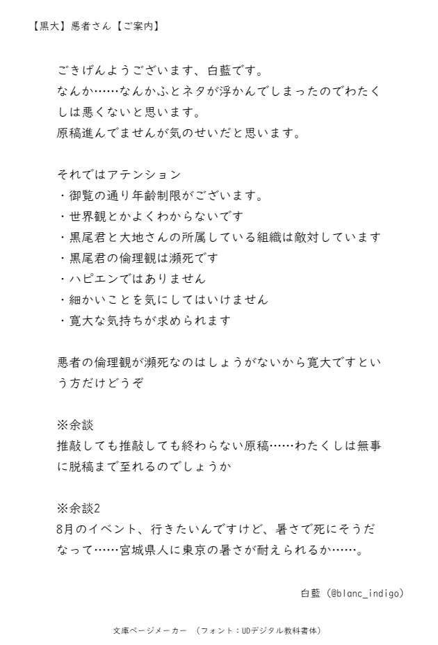 blanc_indigo☆quiet followDONE18歳以上? yes/no #黒大 show hide show all(+9 images) Tap to full screen (size:630x928).Repost is prohibited Let's send reactions! freqpopularsnackothersPayment processing Replies from the creator Follow creator you care about!☆quiet follow blanc_indigoDONE 4 blanc_indigoDONE【黒大】だから言いたくなかったのに 5 blanc_indigoDONE18歳以上? yes/no 10 blanc_indigoDONE未来捏造大学生黒大 5 blanc_indigoDONE18↑ y/n 11 blanc_indigoDONE捏造アラフォーに足突っ込んだ黒大。黒尾君が当社比でクズです読んだ後の苦情は受け付けません18↑? y/n 12 related works blanc_indigoDONE 6 itokichi41DONE◆黒大webオンリー【指触れ合うも多掌の因縁】で展示してました 6 こはくDOODLE10/14黒大webオンリーにて展示しました漫画です!ありがとうございました🫶 6 amakou13MOURNING黒大スケベがみたすぎてここに投げた事を許してくれ 213 mayuchiMAIKINGまだ描きかけですが…雄ッぱぶのやつです halfnoodlesDONE黒大性癖シャッフルお題『泣き顔』 2 SKKY_KEBDONE第0回黒大性癖🔞シャッフルゲームで描いた⚠️触手×黒大と第1回黒大性癖シャッフルゲームで描いた獣人黒大です!pass※18歳以上ですか? y/n 2 SKKY_KEBDONE黒大のサワムラサンが嫉妬する小話 9 SKKY_KEBPAST黒大webオンリー展示2017年発行「bouquet」再録 15 recommended works アントニオDOODLEおいおい顔色悪ィし鼻血出てんぞ!大丈夫か⁉大丈夫だ、お前は前だけを見てろ…!EMP撃ちまくりで実はフラッフラだけど【オクの前ではいつでも余裕綽々でいたい雇】#お題ガチャ #CPお題のようなガチャ 3 sumia_sousakuDONE未知世が小悪魔の格好をしていたので自分の前だけなら許すと真顔で言う涼輔 なんか思ってた反応と違うな…と思ってる未知世 はるしきDONE白昼夢(李楽)お題ガチャ『毎日のように高解像度の楽進が夢に登場するので現実との区別がつかなくなってくる李典。』#お題ガチャ 1331 tizyoutoumikmtDOODLE「生徒先生がちゃ」※きめつ学炭煉遅くまで残って勉強してたらきょうじゅろうがみかんくれた#お題ガチャ https://odaibako.net/gacha/1767?share=tw みかん持ってる先生可愛いw tizyoutoumikmtDOODLE「お題ガチャ。」※同棲炭煉たんじろうが席を離れた隙に、たんじろうのスマホで自撮りを撮るきょうじゅろう。#お題ガチャ #色々な二人ガチャ https://odaibako.net/gacha/1837?share=tw炭君が携帯にロックかけてないのが不用心に思ったのでこんな写真がた他人に見られたらやばいだろう?って意味を込めて撮った煉さんロックはしっかりかけるようになった炭君。 小さな葉っぱDONEワルロゼ(ワルイージ×ロゼッタ)の短いものです。お題ガチャでお題を頂きました。頂いたお題↓【推しカプシチュガチャ】「好き」と伝えるのが恥ずかしくて何も言えなくなってしまうロゼッタと、それを言ってくれるときを辛抱強く待つワルイージ #お題ガチャ #推しカプシチュガチャ https://odaibako.net/gacha/963?share=tw 347 rntnxinranDOODLE雨夜 18 tizyoutoumikmtDOODLE夜遅くに帰ってきたたんじろうが寝室を見るとれんごくさんがYESNO枕を抱きしめて眠っていた。YESの方を向いてはいるけれど今日はゆっくり寝かせてあげることにした。翌朝ちょっとだけ拗ねるれんごくさん。#お題ガチャ #お互いが大切なふたり https://odaibako.net/gacha/5834?share=tw 拗ねる煉さんかわいいなぁ※炭煉 mayuchiREHABILIえっちなシーン本当に描けないから練習…描ける方マジで尊敬…😭 2