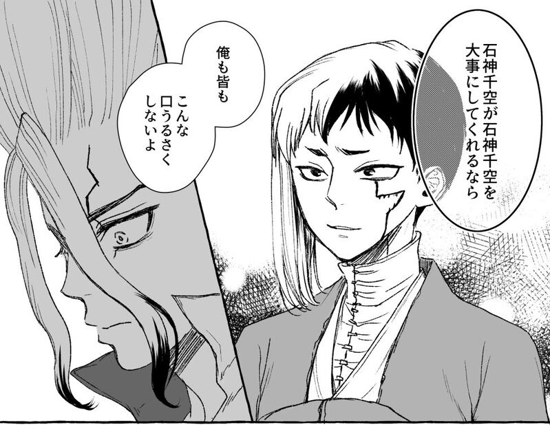 Kazemachi☆quiet followDOODLEリハビリ🃏🚀 描きたいとこだけ ##ゲ千 Tap to full screen (size:974x753).Repost is prohibited Let's send reactions! freqpopularsnackothersPayment processing Replies from the creator Follow creator you care about!☆quiet follow KazemachiPASTWebオンリーの企画に参加させて頂いた時のイラスト🃏🚀更新のない間もスタンプを送っていただき本当にありがとうございます✨ KazemachiDOODLEアニマルぬいちゃんが冬毛+30センチくらいの大きさになったら…という夢シチュ(?)から始まった、冬毛でもっふもふの🦇🍙=わたゲさんと🚀ちゃん+αの小ネタです謎しかないので雰囲気で見られる方向け 4 KazemachiDOODLE🚀ちゃんのハグ変遷 2 KazemachiDOODLE※ケモ/ゲ千ワオく~ちゃんブームが来ていたんですよ東武コラボ行きたいなあ 4 KazemachiDOODLEちびぬい🍙と🚀ちゃん(フォロワさんのぬい撮りシチュFA) KazemachiDOODLE大好きデパ千ヘアアレンジ(ヘアアレンジと言い張る) recommended works usaDOODLEサークルカット間に合ったよLEOくん…… usaMOURNINGみんなこんなこと言わないZL 2 usaDOODLE祝う気あるのか? akiranhinaTRAININGあなたはゲ千で【 すごい 】か【 吹き出す 】を使用した140字SSを書いてください。ダメだ、エロいことしか思いつかない。両方チョイスするには140字は足りなさすぎる。吹き出すは供養で書こう。はつもの千空は未知の感覚に慄いた。想像を軽く超えていた。 一番知らなかったのは見たこともない欲情したゲンの瞳に映り込む自分の表情。 普段の倒語はどこへやら『ヤバい』『すごい』と連呼するゲンに吹き出しそうになるのを堪えて背に腕を回す。 そして千空はもっと寄越せと腰を揺すった。 133 akiranhinaTRAININGゲ千は回帰の意味を持つ「腹」へ、賭けに勝ってキスをします。この後、騎乗位でアンアンいうのは千空ちゃん。マグロにご奉仕「ちょ、ちょっと。千空ちゃんっ」 「ぁ?」 煩わしそうに千空が顔を上げる。 「お腹壊しちゃうから、おへそ舐めないで」 「賭けに負けといて注文が多いなぁ、料理人か?てめぇは」 「ぐぅ」 悔しげに彼は口を尖らせる。 「マグロよろしく、ご奉仕されてろ」 千空は勝者の権利を行使した。 140 akiranhinaTRAININGあなたのゲ千さんは【移り香】をお題にして、140字以内でSSを書いてください居ても居なくてもテメェの存在感はデケェな(移香はたぶん花の香り薬品の調合がひと段落したところに、スイカがラボを覗き込んだ。 「アレ?」 狭いラボを見回して首を捻る。 「どうしたんだ、スイカ」 薬品を一つ一つ確認しながら棚に戻していたクロムが尋ねる。 「ゲンがいると思ったのに。居ないんだよ?」 千空は少女の疑問に合点がいって苦笑いを浮かべた。 140 akiranhinaTRAININGゲ千へのお題は『ほんの少しの、嫉妬』です。コイがアイに変化する「千空ちゃんは俺のなのに」 思わず聞き逃しそうな小さな呟きを拾った。 小さな不満だが、千空は嬉しさのあまりゲンに抱きついた。 「な、何?どしたの?」 突然の抱擁に彼はひどく慌てている。 「やっと追いついたみてぇーだからな。おせぇーわ」 ゲンの小さな独占欲を千空は歓迎した。 136 akiranhinaTRAININGあなたがゲ千で書く本日の140字SSのお題は『紅茶の淹れ方』です無骨なマグカップはペアで大樹作。ティーコジやキッチンミトンは杠作の結婚祝い…とでも、妄想してください。穏やかな昼下がりat復興後しゅんしゅんとヤカンから湯気が立ち上る。茶器は十分に温まった。 今年はじめての茶葉は柔らかい香りを辺りに広げていた。 茶匙で二杯。熱湯を茶葉を踊らせるように注いでコジを被せる。 千空特製の砂時計を返して砂が落ち切るのを待つ。 香り豊かな琥珀色の液体を無骨なマグカップに注いだ。 138 akiranhinaTRAININGあなたはゲ千で、【ありがとうの代わりに】をお題に140字SSを書いてください。テーマ『後ろめたさに』の続き?いよいよ収まるところに収まった?…収まらなかった。ありがとう(さよなら)の代わりにゲンが残したメッセージに千空は気付いた?「くっそ。これで終わりじゃねぇからな」千空が目を覚ますとベッドの上で共寝をしていた男は消え失せていた。 あれだけ搾り取ってやったのに、どこにそんな体力があったのか? 「こちとら足腰立たねぇってのに…」 悪態を吐いてみても無理が祟って体を起こすのもしんどい。 積もりに積もった澱を吐き出した。意外とスッキリしている。 138