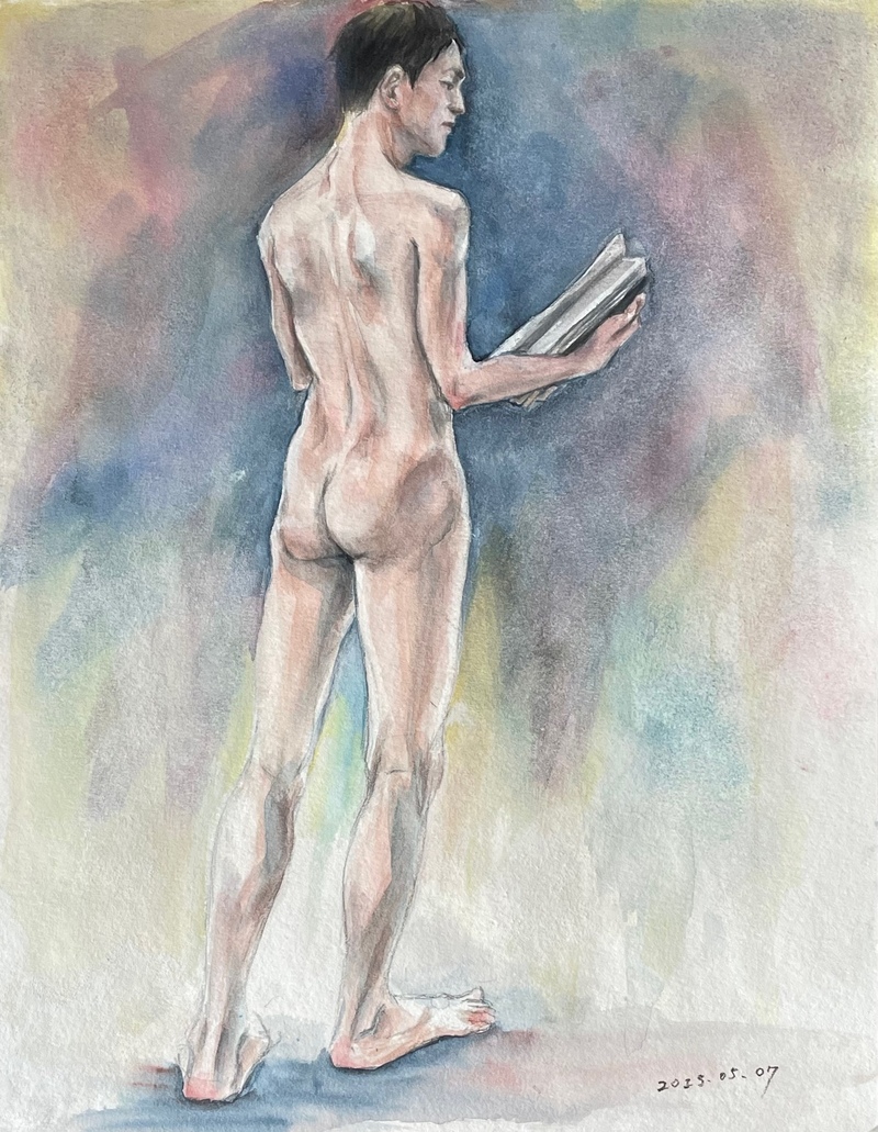 流れるような美しい背中のラインは彼ならでは。雰囲気のあるポーズでイマジネーションを掻き立てられますが、残念ながら時間が足らず家で細部と背景を加筆。