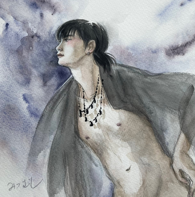 サラサラロングヘアのクールビューティー🥰後日水彩紙にコピーして着彩しました。
