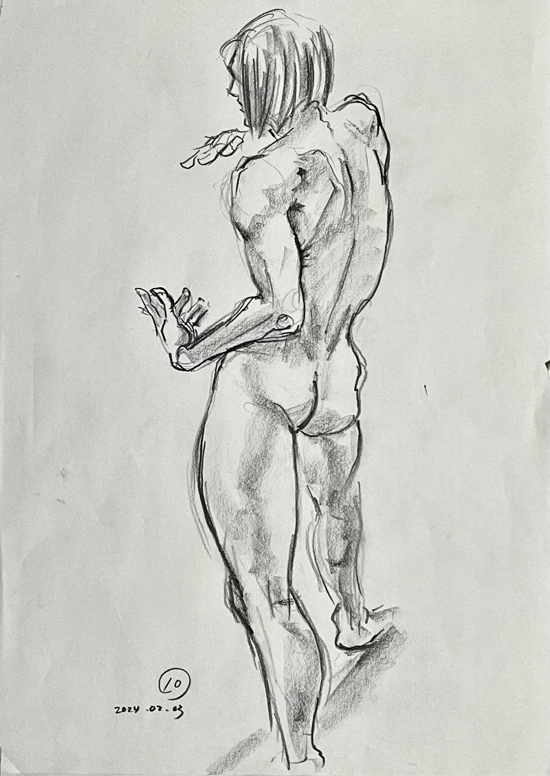 この日は10分ポーズが調子良かった。S字カーブを描く体のラインがうまく捉えられたと思う。20分は迷走…反省。