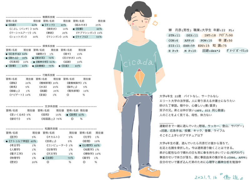 2 後悔のあまり塞ぎ込んでいた夏彦は探索者となり神話生物と遭遇してしまう。(CoCシナリオ「わすれんぼうのおうさま」 無事に生還)