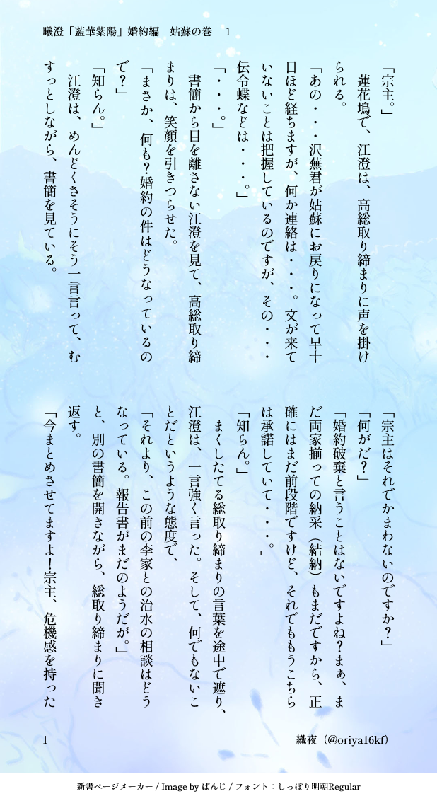 ▼闇のお嬢様オリヤさまへの感想はWaveboxへ(「藍より真愛し」連載中の間)