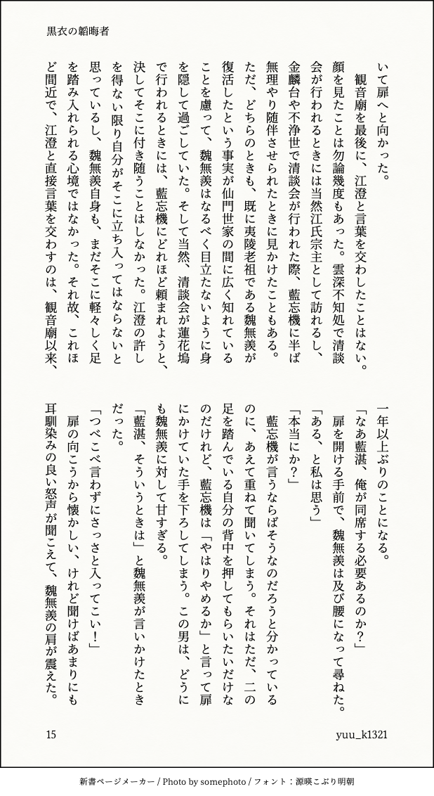 yuu_k1321☆quiet followDONE知己忘羨の日常③『黒衣の韜晦者』15-25p/86p show all(+10 images) Tap to full screen (size:618x1132).Repost is prohibited Let's send reactions! freqpopularsnackothersPayment processing Replies from the creator Follow creator you care about!☆quiet follow yuu_k1321DONE『昔日の面影』全文 42 yuu_k1321DONE蓮源郷cql忘羨(知己)50話後、雲深不知処に蓮池を作る二人の話。かとうさんとの合作です。 57 yuu_k1321DONE長編序章 18 yuu_k1321DONE二神の昇天 1/2R-18部分を含めた全文。 56 yuu_k1321DONE二神の昇天 2/2 20 yuu_k1321DONE知己忘羨の日常④『サンタマリア』 36
