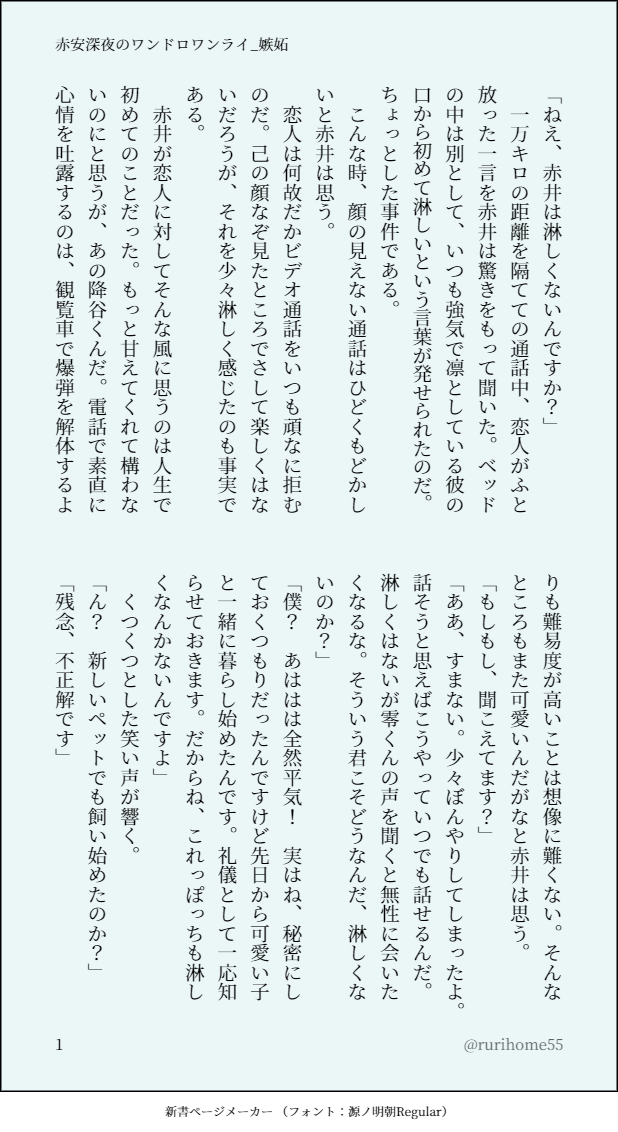 瑠璃色☆quiet followDONE赤安深夜のワンドロワンライ 第179回 お題「嫉妬」◆遠距離の秀零です #赤安深夜のワンドロワンライ akanMidnightWandolowanRai show all(+4 images) Tap to full screen (size:618x1132).Repost is prohibited Let's send reactions! freqpopularsnackothersPayment processing Replies from the creator Follow creator you care about!☆quiet follow 瑠璃色DONE赤安深夜のワンドロワンライ 第179回 お題「嫉妬」◆遠距離の秀零です 5 瑠璃色DONE赤安深夜のワンドロワンライ 第146回お題「ベッド」 5 related works 瑠璃色DONE赤安深夜のワンドロワンライ 第179回 お題「嫉妬」◆遠距離の秀零です 5 瑠璃色DONE赤安深夜のワンドロワンライ 第146回お題「ベッド」 5 recommended works 瑠璃色DONE赤安深夜のワンドロワンライ 第179回 お題「嫉妬」◆遠距離の秀零です 5 スマイルDONE看守長のふわふわ…※囚隠2枚です 2 小SylvieDOODLE原顾 mnitoemDONEからうたシール好きな色で何パターンかアップしました!切り取り✂️していただくといいかも…🦑もしよかったらご覧ください🙇♀️イベント終了後も印刷できますあげたかった絵間に合わなそうなので今日の夜は会場で回るの楽しもうと思います😭🙇♀️リアクションも書き込みボードもありがとうございます!全て返信しますのでお待ちください♨️✍️スマフォ裏に入れてもok💞 2 半地下PASTメイドの日 烏詠以前Twitterにアップしたメイド服を着せられた詠くんのお話です。エロはない!! 3 mikan_irDONE雪肌精 そのに tsuuzuraDOODLE2024/12/22グラフェス えらのPAST🐎🤗 __haruta__SPOILER軍師感想