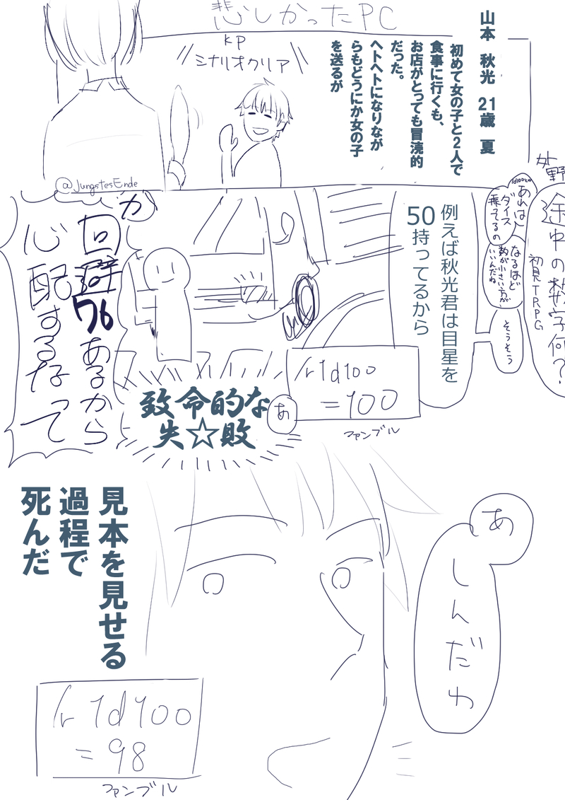 JungstesEnde☆quiet followMEMO彼は死んだ。女神さまが言うなら仕方ない。 ##自探索者 ##ロスト Tap to full screen (size:1191x1684).Repost is prohibited Let's send reactions! freqpopularsnackothersPayment processing Replies from the creator Follow creator you care about!☆quiet follow JungstesEndeDOODLE4/1(あきらちゃん誕生日&えいぷりる)のネタ JungstesEndeDONEビットピース君の誕生日 JungstesEndeMEMO距離感チャート作って遊んだ JungstesEndeMOURNING死体をたべる蝶々は美しい JungstesEndeSPOILERVOIDシナリオネタバレ pass : yesこういうアレコレも可能性というそれ JungstesEndeSPOILER完走めでたい!!