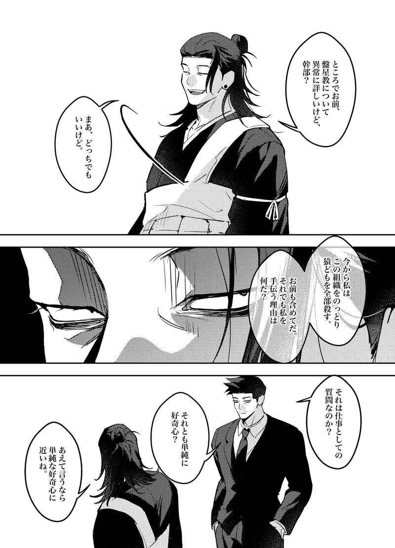 設定本によると、時雨さんは呪霊が見えるらしいので何故刑事やめて日本に来てブローカーやっているのか想像して見たらこうだったんじゃないかなと描いてきました。