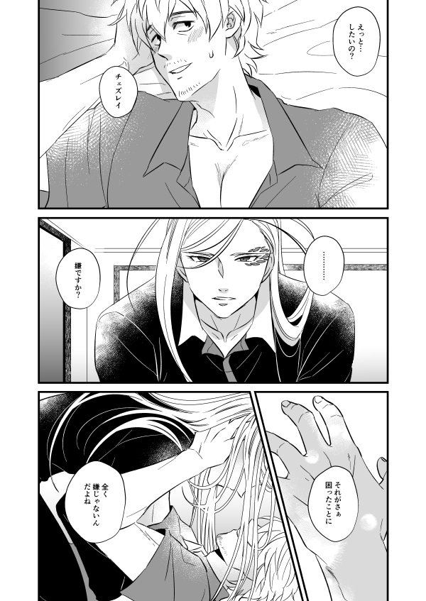 shu10gookabe☆quiet followDONECHASE MORE!!開催記念展示漫画ひたすらイチャイチャしている話 show all(+4 images) Tap to full screen (size:600x847).Repost is prohibited Let's send reactions! freqpopularsnackothersPayment processing Replies from the creator Follow creator you care about!☆quiet follow shu10gookabeDONEkkirでエロいのとかちゅーとか鼻血とか1枚目と2枚目のみ繋がっててあとは短話PASS:18才以上ですか? 6 shu10gookabePASTデス×クラークでクラレイクラ 9 shu10gookabePASTたぶん10年前に描いたであろうルクレイと思って描いていた漫画とかクラークとレイ㌧のBLとかクラークとブレンダとかいろいろそのうち増える 43 shu10gookabePROGRESS【真ハム】冬コミサンプルに上げるR18ページエロを頑張っている エロに詳しい人修正甘かったら教えて…PASS:18才以上ですか? shu10gookabeDONE冬コミ表紙できたで!ちょっと脱いでる shu10gookabeDONEきょおどお泊りして一緒に寝て何気ない会話してほしいオチはないよ…描きたい絵を詰め込んだだけの漫画 3 recommended works tv_two_xqPAST身長差 2 29saimanDOODLE最近ツイッターでアップしてたチェズモク 8 FUMIxTxxxHDONEknot for two.ED後、チェズレイの手の話です。お手て繋いでイチャイチャしてるだけ。 夕食の香草焼きが美味かった。サラダのドレッシングはモクマが作ったが、こちらも会心の出来だった。チェズレイも気に入ってくれたらしい。 どこまでもマナーの行き届いた彼が最後までひとくち分残しておくのは、食べ終わってしまうのを惜しむ気持ちの表れだと、今のモクマは知っている。たぶんもう、今のこの世でモクマだけが知っている。 片付けを済ませると、どちらからともなくリビングのソファに並んで腰を下ろした。テレビも点けず穏やかな静けさを共有する。 二人では居るが、特に交歓に耽るでもなくただ二人で居る。それが心地好い関係に落ち着ける日がくるなんて、かつては思いもしなかった。決して楽しいばかりではなかった二人の馴れ初めを手繰れどただただ小気味良いばかりだ。 モクマは晩酌に徳利一本と猪口を持ち込み、チェズレイはタブレットで何やら悪巧みを捏ね回している。しかしお互いに片手間だ。何故なら、ふたりの隣り合った手と手は繋がれているから。チェズレイが求め、モクマが応えた。逆の日もある。時折ふたりの間に発生する、まるで幼い恋人同士のような戯れ。 ……そんな片手間に、モクマはぼんやりと宙を仰いだ。まだ一杯 4701 itUDONDONE留守番するチェズモク(忍者さん編) 2 sakazuki_sskDONEモ誕生日おめでとうございます!!!公式とは違う時系列ということでたのむ!!!!チェズモクです!!! 3 itUDONDONEナンでもないようなことが〜 ナマステだったと思う〜♪(チェモ)越境後のモクマさんです#ヴィン愛込められる前に書いとく とりまるDOODLEキョオド(女体化注意 オドが♀)めちゃくちゃイケメンが好きな子の胸に夢中なの可愛いなって思う やすけ@さくらうさぎ御殿DOODLEペルソナ3 真ハム?「マリンカリンを受けた真田先輩がハム子を攻撃してしまった瞬間のおはなし」別のお話の土台のつもりです。 やすけ@さくらうさぎ御殿DOODLEペルソナ3 真ハムマリンカリンの前日譚 5