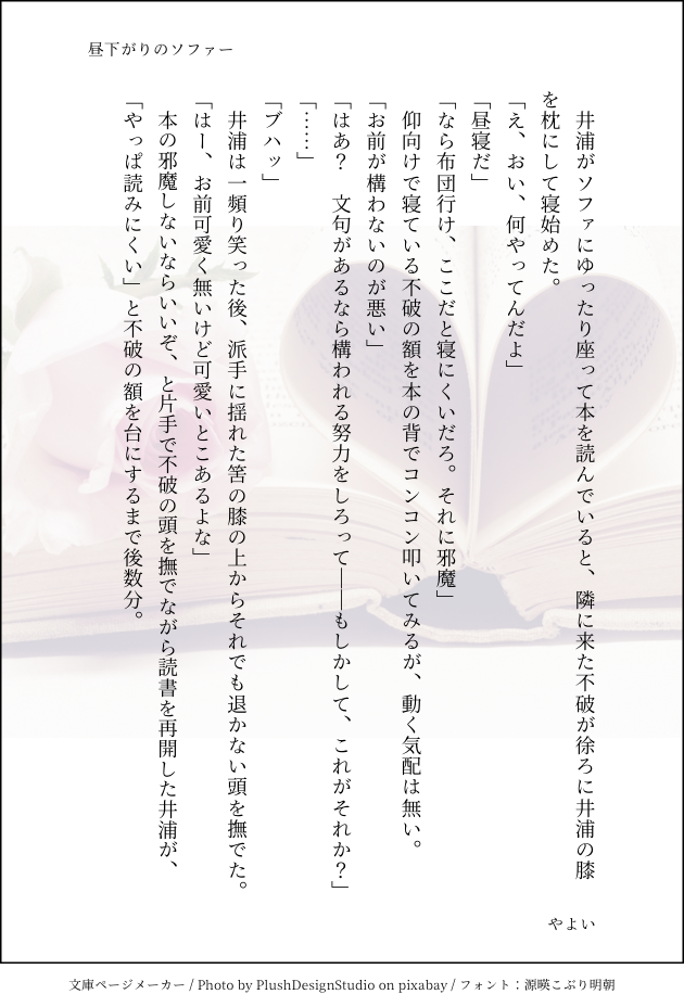 やよい☆quiet followDOODLE膝枕の不井 #不井 noWell Tap to full screen (size:630x928).Repost is prohibited Let's send reactions! freqpopularsnackothersPayment processing Replies from the creator Follow creator you care about!☆quiet follow やよいValentine不井のバレンタイン 3 やよいDONE本冴のホラーっぽい話、第二弾。怖く無いよ大丈夫だよ#本冴ホラー企画 6 やよいDONE本冴のホラーっぽい話。怖く無いので部屋を暗くしてお読みください(せめてもの雰囲気づくり)#本冴ホラー企画 8 やよいMOURNING本冴ホラーもどき 3 やよいDONE王井クリスマス&真ん中バースデーおめでとう〜 3 やよいDONE井浦慶生誕祭2021 related works やよいDOODLE膝枕の不井 やよいMOURNINGあなたは30分以内に3RTされたら、久しぶりに再会する二人の設定で公衆の前で告白する不井の、漫画または小説を書きます。# shindanmaker 2 やよいValentine不井のバレンタイン 3 やよいMOURNING # リプもらった番号のワードを使って文を書く# 言の葉パレットキャラ:不破ワード:7番 ゴッホ(生きる・彩度・強か) 3 やよいREHABILI2021年、中秋の名月に寄せて recommended works taraorata13DOODLE似合うんだけど、首元で男の子だと分かるくらいの雑な女装をしてほしい王城は似合う確定だけど、井浦も似合うでしょ!!?!美人じゃん!!!!!?!私が盲目モンペなわけじゃなくてエ…井浦慶美人よな…???155話とか引くぐらい美人だったし……能京2年ズマッスルメイドも描いてるけどこっちは完全にネタになってしまった💪💪今度あげよ かさはらTRAININGアナログ王井よく考えたらキッスする王井あんま描いたことないので練習 精進してこ🥺 4 カコ🐙DONEアニメ塗りを思い出して力尽きた MonoCloToneMOURNING終着点が見えなくなったので供養前に書いたやつの続きです 2 soyamano73DONE表の王井の続き。非常にぬるいR18パスワードは王井の誕生日12桁(王の誕生日4桁+井の誕生日4桁+真ん中バースデー4桁) 16 sirome0_0DONE彼女がイライラしちゃいました。少し大人になった彼らはどうするの?4️⃣1️⃣、🐝、🐆 1368 yora_samaSPOILER軍師の感想追加😌(ネタバレしない程度に感情爆発させてるイラスト感想ですが偏りが酷いです。酷い偏りようです。) 6 KK_398SPOILER夢墜ち 現行未通過❌ シロうさDOODLEう~らな~いし!ふ~くのい~ろみす~~った!