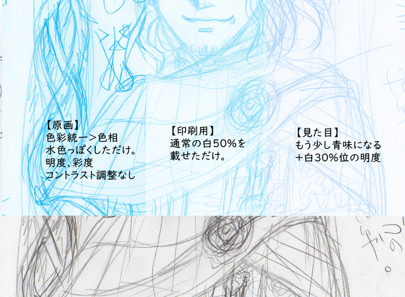 アナログで鉛筆ラフ>も少し線整理用に紙に書くようのアウトプット。