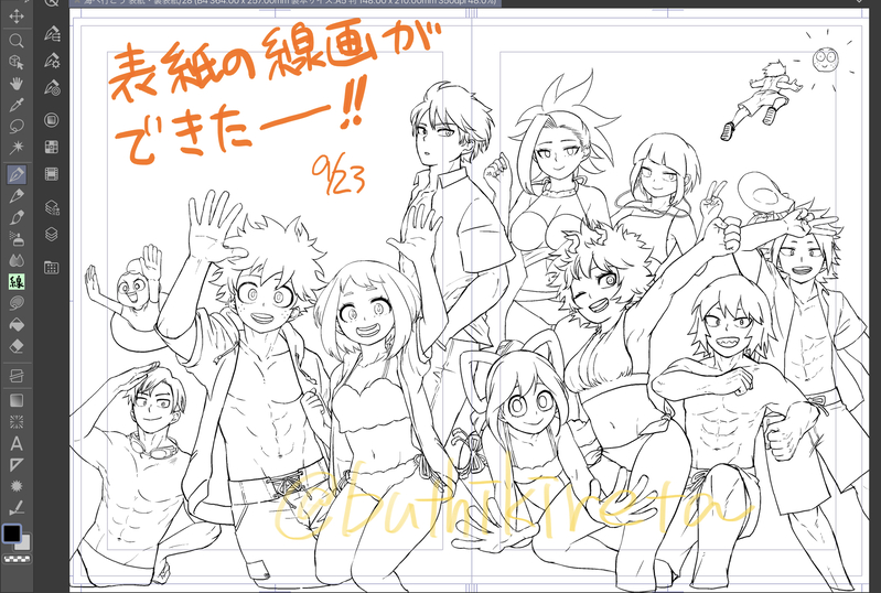 意地でも今回のメンバー全員描いてやるという意気込みで描き始め、途中で挫けそうになった😭😭オールキャラとか描いてる人マジでなんなの鬼神???