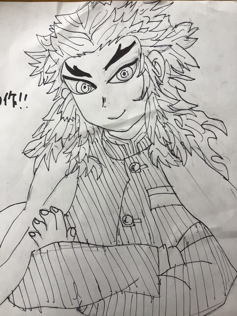 母、お絵描き初心者で模写練習中。猗窩煉、悲鳴嶼さん。文字書く方が慣れてる。