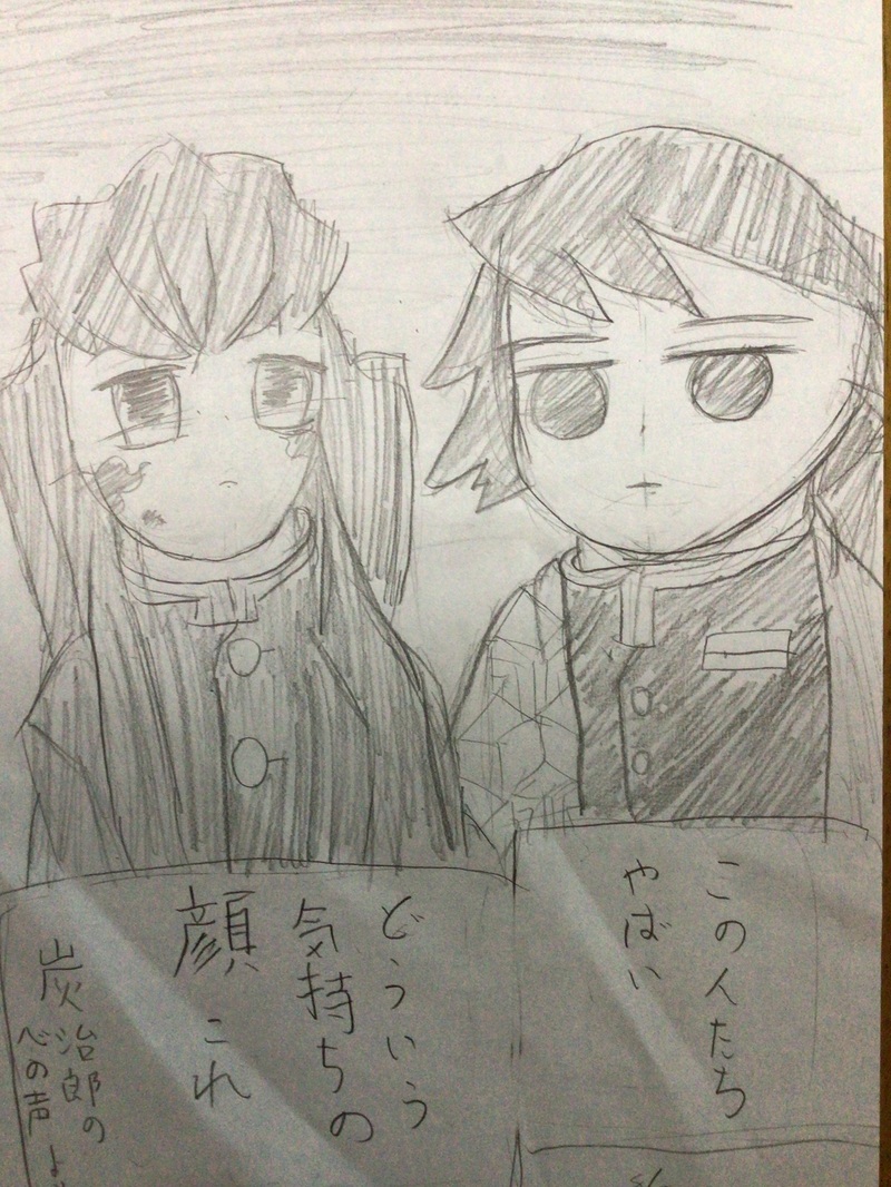 母、お絵描き初心者で模写練習中。猗窩煉、悲鳴嶼さん。文字書く方が慣れてる。