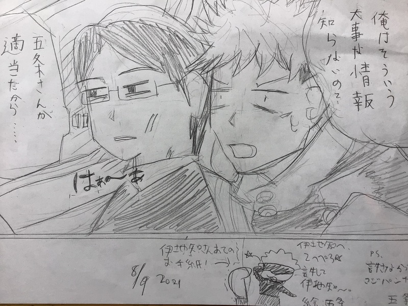 娘、お絵描き大好き。ちゃおを卒業したばかり。五条先生、ジョジョ2部&3部。