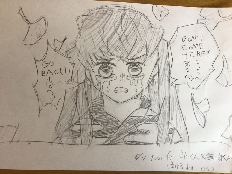 母、お絵描き初心者で模写練習中。猗窩煉、悲鳴嶼さん。文字書く方が慣れてる。