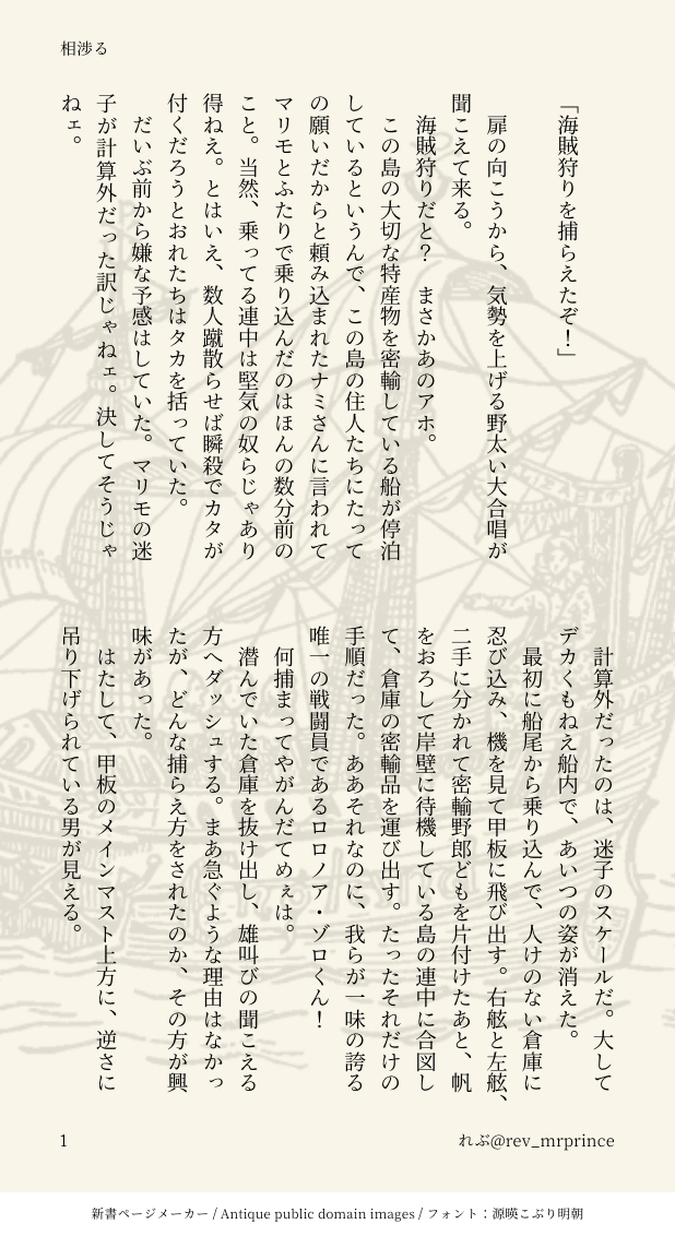 れぶsz☆quiet followTRAINING※支部にてタイトル「始まりの話をしよう」に変更しています。「相渉る」19初期海賊パラレル。両翼の芽生えのようなサゾの芽生えのような… ##両翼 ##サンゾロ show all(+4 images) Tap to full screen (size:618x1132).Repost is prohibited Let's send reactions! freqpopularsnackothersPayment processing Replies from the creator Follow creator you care about!☆quiet follow れぶszDOODLE昨年のサン誕、ゾロ誕、出した本の表紙、サクカです 4 れぶszDOODLEセルフアンソロ書き下ろし「残馨」の元ネタ。過去に別垢にて公開していた歳の差漫画です。当時読まれた方がいたら本当にすみません。実はこれは気に入っていてどうしても本当はサゾとして描きたかった作品でして、このたび小説としてサゾに出来たのでした…完全なる私の我儘です。小説の方を読んで下さったら、あーこれが元ネタねとチラ見して下さいね! 7 れぶszDOODLE片想い 19さい。 2 れぶszPAST「告白」3ページ過去作。両翼ブロマンスのつもりで描いたやつです両片思いなのかもしれないふたり。 3 れぶszDOODLE れぶszDOODLE真ん中バースデー2023に寄せて永遠に終わらないふたりであれ!