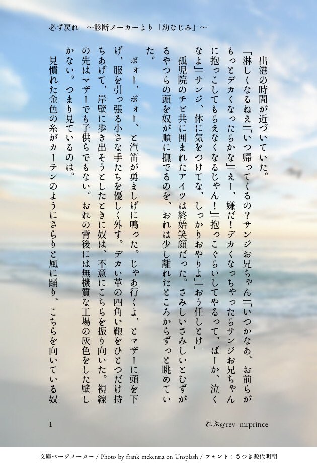 れぶsz☆quiet followMOURNING #サンゾロ診断メーカーで出た「過去の記憶がある幼馴染」 ##サンゾロ show all(+3 images) Tap to full screen (size:630x928).Repost is prohibited Let's send reactions! freqpopularsnackothersPayment processing Replies from the creator Follow creator you care about!☆quiet follow れぶszDOODLE昨年のサン誕、ゾロ誕、出した本の表紙、サクカです 4 れぶszDOODLEセルフアンソロ書き下ろし「残馨」の元ネタ。過去に別垢にて公開していた歳の差漫画です。当時読まれた方がいたら本当にすみません。実はこれは気に入っていてどうしても本当はサゾとして描きたかった作品でして、このたび小説としてサゾに出来たのでした…完全なる私の我儘です。小説の方を読んで下さったら、あーこれが元ネタねとチラ見して下さいね! 7 れぶszDOODLE片想い 19さい。 2 れぶszPAST「告白」3ページ過去作。両翼ブロマンスのつもりで描いたやつです両片思いなのかもしれないふたり。 3 れぶszDOODLE れぶszDOODLE真ん中バースデー2023に寄せて永遠に終わらないふたりであれ! related works ムガイTRAININGサンゾロです。誘い受けのつもりゾがノリノリなので苦手な方は気をつけてくださいパスワード → 成人済み? yes or no 3 もちきり✌️DOODLE絵たち 83 suppa_sugataDOODLEサゾと🐯ちょっと不穏でホラー?いや、そんなにかも。雰囲気で読んで下さい。 1344 渦炎uzuenDONE【ZがSを可愛がるSZ】あまりに雑だったので丸ごと描き直した。 渦炎uzuenPAST【リクされた一言でひとコマ】みたいなイラストじゃないかと推察されるSZ,2枚目は安定の受け(から攻めへの)ハラ(スメント) 2 渦炎uzuenPAST【河童牛】麦わら劇場ネタ。…今通じるのか。知らんけど。 3 jyuuzou_401gouDOODLEサンゾロ学パロ🔞over 18?(y/n) 2 ゆの湯。MOURNING5人のサンジくんがゾロをめちゃくちゃにする話。・謎時間軸、謎設定・♡喘ぎ・ところどころおかしい前の小説、たくさんのリアクションありがとうございます!今続編をかいているのですが、どんな展開にしようか迷っています…。この小説もそんな感じなのですが、また好評だったら続きをかきます! 923 plasticsunDOODLESxZpassword: 18↑ (yes/no)