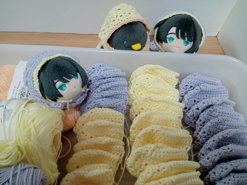 おもちちゃんたちの手編み服も作ってます