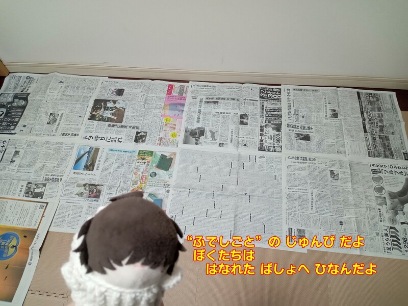 床を覆う新聞紙は筆仕事開始の合図なのです