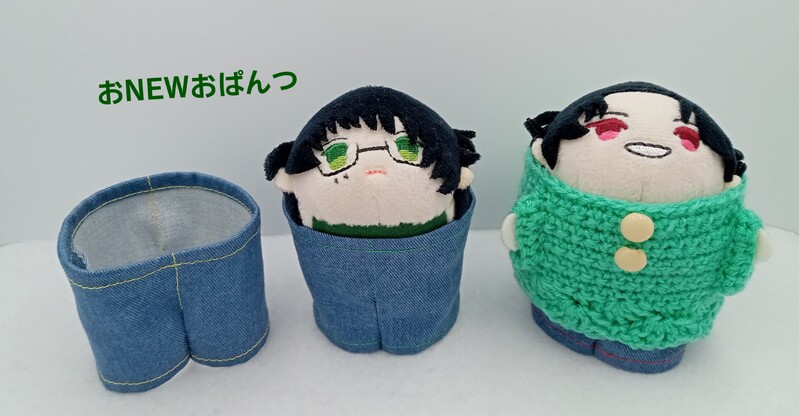 おぱんつだけだとかなりシュールだけど、これ履いてると、おもちの付属装飾痛めずにお洋服着脱できるし、トップス着せるとイイ感じのボトムスに見える!