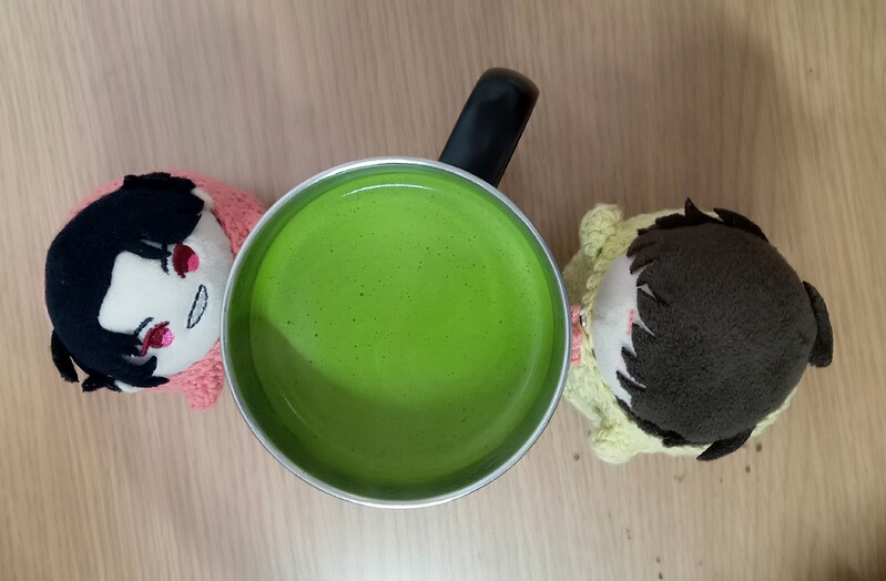 ホットの抹茶ラテ。こてくんカラーだね