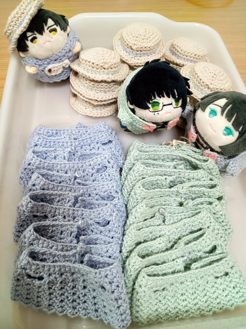 おもちちゃんたちの手編み服も作ってます