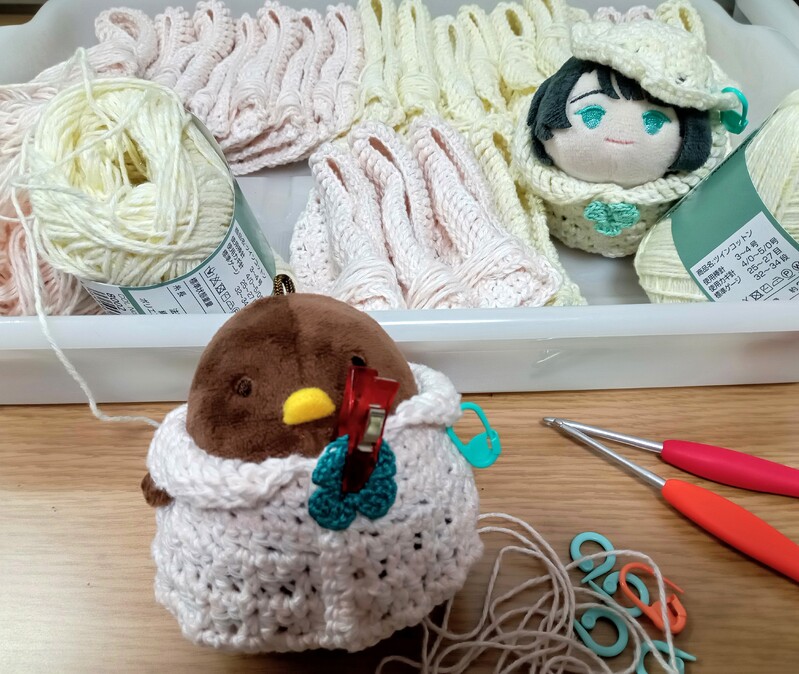 おもちちゃんたちの手編み服も作ってます