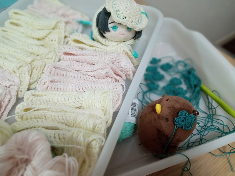 おもちちゃんたちの手編み服も作ってます