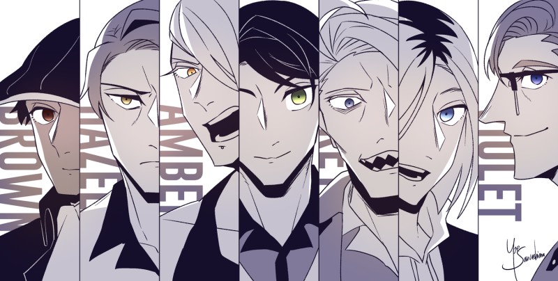 左から、ルカス・リベイロ、高瀬真道、黒葛原天骸、川嶋アルトロ、堀兼露珀、雨音一道、四十万晃