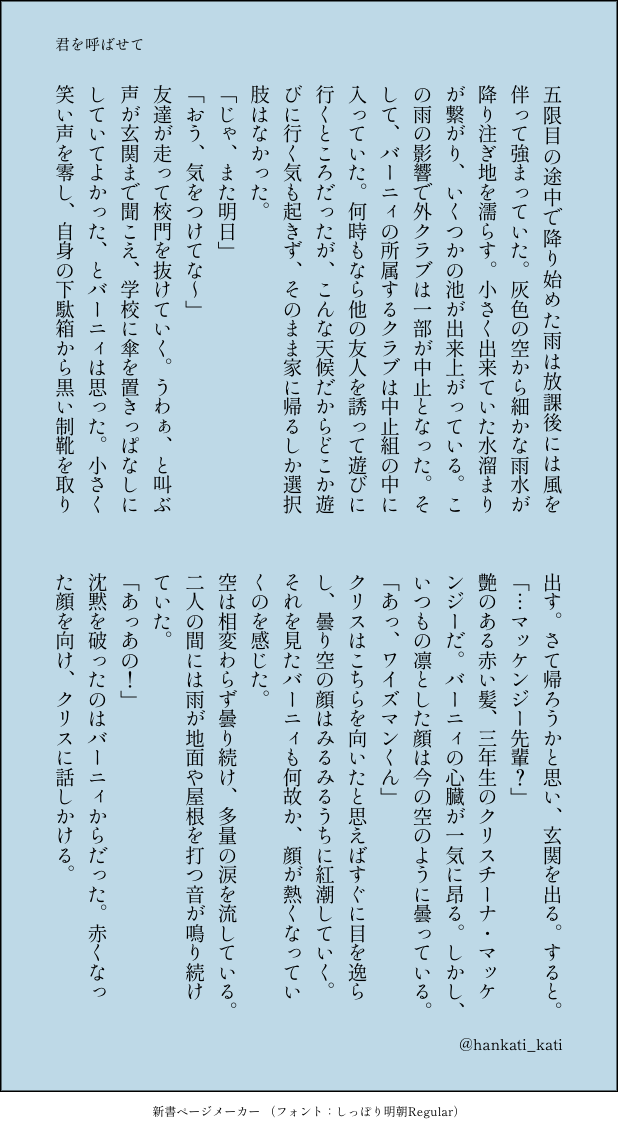 オパナピ置き場☆quiet followDONE⚠️学パロバニクリです…最近なんかジメジメしてきたので…あと1ヶ月もしたら梅雨だし… show all(+4 images) Tap to full screen (size:618x1132).Repost is prohibited Let's send reactions! freqpopularsnackothersPayment processing Replies from the creator Follow creator you care about!☆quiet follow オパナピ置き場SPOILER⚠️種自由人間関係ネタバレあり なんでもいける人オル←イン、イングリットの妄想話です 1回目見た衝動で爆速で書いてしまったので、変なところあるかもしれない 小説とかまだ読んでない人が書いているため、ちょっとキャラクターに違和感感じるかもしれないです オパナピ置き場DONE先日配信ありましたね 自分の中で、初見時からいいんじゃね?となっていた二人、ヱリアノレと]ナの学パロR-18ssです 誰得 私得18歳以上ですか?↓ 4 オパナピ置き場MOURNING睡姦もえらぽちゃんガッツリはしてないけど、1歩手前まで行ってます一応18歳未満の方は見るのは控えてね オパナピ置き場DONE⚠️ネタバレ注意発動篇ラストあたりのラポーちゃんの話ですネットでイデについて調べてたら、モエラが迎えに来てないとかなんとか書いてあったので、ギリギリラポーちゃんは最後まで生きてたんじゃないかという妄想です 2 オパナピ置き場PAST⚠️腐向け朝から今日はかき氷の日と聞いて、かなり前に書いたジュドカミssを供養しますガソダムを知り、ジュドカミを知ってすぐ勢いのままに書いた文章のため、キャラ崩壊もあるかも……すみません…… 3 オパナピ置き場DONEとてもめちゃくちゃ大遅刻してしまいました………バレンタインのお話、cpはバニクリです………個人的な感想ですが、あっまあまの甘にしてやりました。 5 recommended works Bananacat823DOODLEP1)只是想畫淡淡的日常希望能呈現出文炫竣對他相赫哥以及李相赫對炫竣生活中的寵愛四年了老夫老夫(?然後相赫很清楚知道什麼話題可以討好弟弟:DP2)下班後討個獎勵ㄅ:D*OOC,請勿上升真人密碼:T1fighting 2 Figeon_DOODLE出于对某些台词的不满情绪而诞生出的咕哒理查。 2 kisan_desuDOODLE虚無るん ao_lakeDONE刀剣乱舞 へしへし 739 Putako_pigpetDOODLE🚬🐯がただチュッチュしてるだけ さみ〜DONE交際バレも厭わない、しごできゴョ〜さんのマンガです iboooornDONE大佐×大尉(R15)🍷🍷のあと狂った たすけて 1654 YuudaMOURNINGかわいいかわいいつっきー黒尾さん幸せ者だなぁ… 3 La_Chime_DOODLEしょくカレ「ベビ🍞と🍛」回のあとの漫画のあと。 3