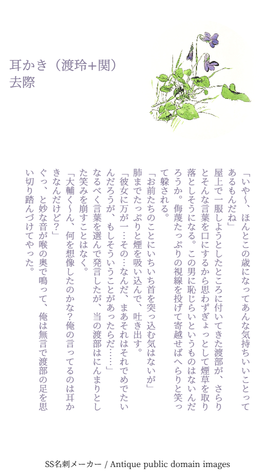 去際(さり) @__saligia スタマイ・ドラマト。渡玲ちゃんが生きがい。ツイッターに投げた名刺メーカーSSを纏めています。 ☆quiet follow Yell with Emoji POIPOI 44