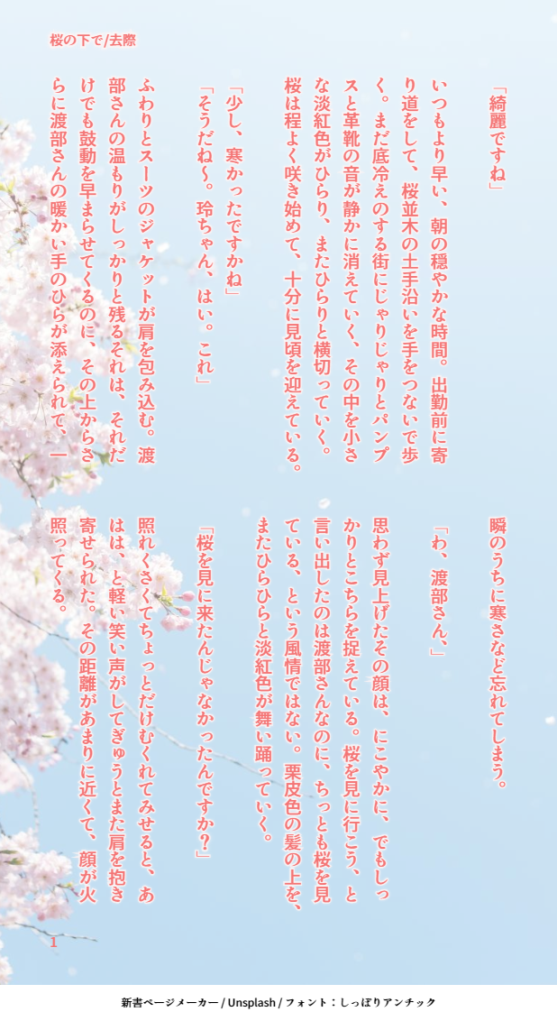 去際(さり)☆quiet followDONE『桜の下で』渡玲ちゃん。お花見をする話。 show all(+2 images) Tap to full screen (size:618x1132).Repost is prohibited Let's send reactions! freqpopularsnackothersPayment processing Replies from the creator Follow creator you care about!☆quiet follow 去際(さり)DONE『14字でキスシーンを書く』タグより。ランダムに関玲・渡玲2・耀玲。 4 去際(さり)DONE『Femme fatal』渡玲ちゃん。ファム・ファタールの二重の意味を知って思わず書いた。 3 去際(さり)DONE『Lighthouse』渡玲ちゃん。同名のSalyuちゃんの歌より想像して書いたもの。 2 去際(さり)DONE『手相占い』手相占い中の渡玲ちゃん。 3 去際(さり)DONE『drunk on you』親睦会絡みの渡玲ちゃん。やっぱりかっこいい渡部さんはいません。 4 去際(さり)DONE『そのキス、足止めにつき』渡玲ちゃん。かっこいい渡部さんはいません。 4 recommended works kofigyugi2ndDONE美恋ちゃんの歯磨きシーン🪥眠そうにしているね、昨夜は遅くまで勉強してたのかな? 8 JuliSDOODLE寒色悪魔パロ(マサトキ)SL撮影「Sugary Little Devil Halloween」のマサトがすきだから、イベント「Chords of Feelings」の悪魔エレジー(トキヤ)は受けすぎ...妄想暴走しました。 13 蒲焼きDONE一人称の捏造常興が卑屈瘴奸は最初しか喋らない 1174 N_paseri なちょぽむ。DOODLEクリスマス赤安漫画🎄と落書き、サークルカットの没絵です 5 渋柿をつつく暇DOODLE旅ゆく人に約束を一つする 神盗未満 パスは🎄と同様 2665 ゆっしょんDONE立ち絵まとめ2024今年はいっぱい描いたしいっぱい遊んだ〜!☺️企画主催者様/参加者様、シナリオを回して下さったKP様/同卓してくださったPLの皆様、ありがとうございます!圧倒的感謝! 南国の豆沢PROGRESSお顔の練習をしたくて。煙草魔王様。1.線画でけた。2.色塗り途中。色分けしてから個々のパーツを塗る方法にチャレンジしてる。 4 nny_no_trpgDOODLE愛罠蜂2024/11/24KP/ななやPL/毅卞、佐原たくみ すいなDONE12/29-30開催webオンリー「浪花の情熱」の展示作品の平沖です! 6