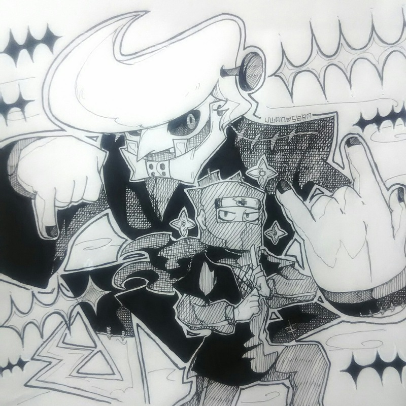 忍者メタルとNUスタイルロカビリーってどっちがムービーでどっちがせんごくだか時折解らなくなるしどっちでも似合う気がする…って絵が放置中だったんですが今日はデクスターさんのお誕生日だし書き上げちゃえって事でこうなりましたおめでと!