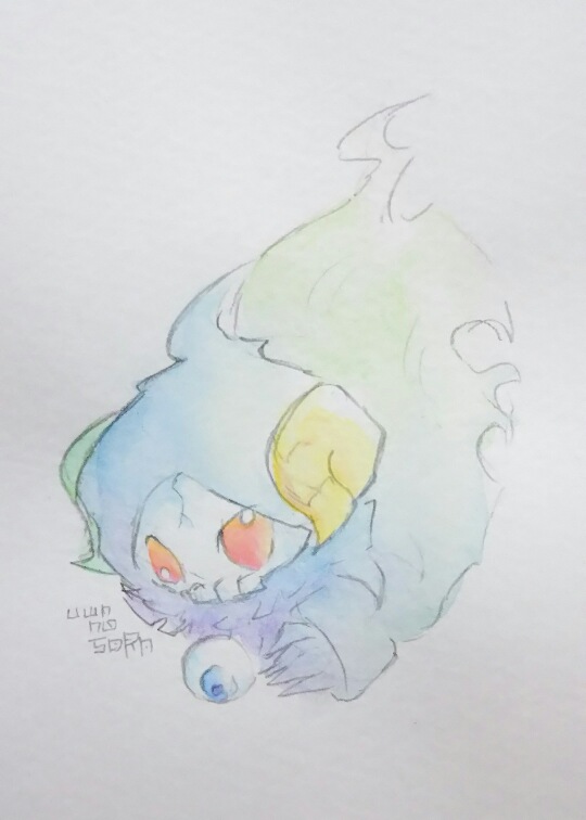 水彩の良さである透明感を殺す塗りかたをいつもしているので、極力混色しないようにざっくり塗ってみた絵