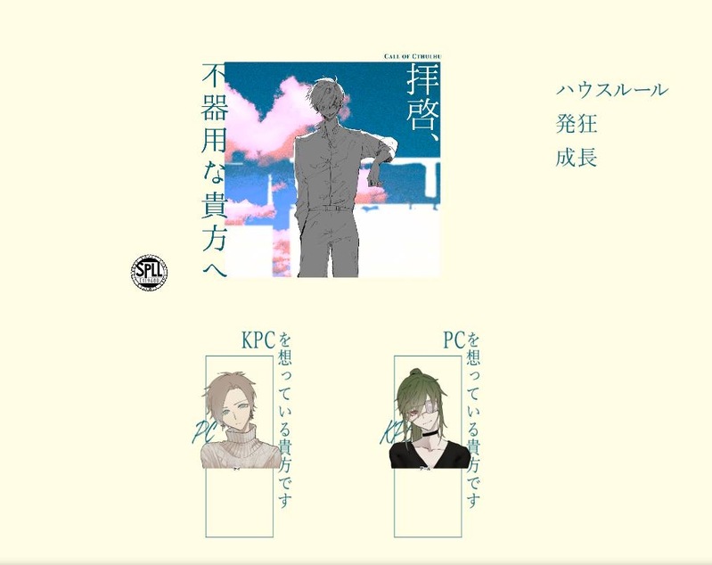 haruacky☆quiet followMEMOCoC「拝啓、不器用な貴方へ」KP/KPC ゆーかげさん(アール)PL/PC ハルアキ(ケイ)END-1で両生還でした😌久方振りにハコニワ継続の2人だったんだけど、私が思うクソ重彼氏の最高峰RPができてめちゃくちゃ満足……ゆーかげさんいつもありがとう🙏🙏 Tap to full screen (size:1013x804).Repost is prohibited Let's send reactions! freqpopularsnackothersPayment processing Replies from the creator Follow creator you care about!☆quiet follow haruackyMEMOCoC「お前だけは俺が殺す」KP きはらさんPL(PC)HO1 とむさん(九十九 叶人)HO2 原っぱさん(菊凪 夜瑠)HO3 ハルアキ(梨子橋 柚李)HO4 りゆーさん(味鋺 麦)走り抜けました〜〜!!お疲れ様でした!!どえれぇ話し合いの末の決着だったけど大満足でした👏みんなありがとう👏👏 haruackyMEMOCoC「天頂突破アイドラトリー」KP なつおさんPL ハルアキ(納 等閑)出目の関係で若干ヒュッとしましたが無事生還〜〜!!自覚なくイレギュラー提案連発してなつおさんを困らせてしまった……ホンマすいません……😂😂 haruackyMEMOCoC「慧眼の狩人」KP れとさんPL ハルアキ(鑑原つぐみ)半泣きなったけど無事完走〜〜!!ソロの推理シ、100回くらい手詰まり感味わってからの達成感で満足感がすごい……甘やかしてくれてありがとうれとさん😂😂 haruackyMEMOCoC「Baby×Buddy」KP/KPC ゆーかげさん(ブルート/布留川 奏翔)PL/PC ハルアキ(秋葉 続樹)ちょっと久しぶりのブラデイ組〜〜!!赤子ブルートくん可愛よ……思わず(中の人が)よしよししそうになって落ち着けキャラじゃない、を繰り返してました haruackyMEMOCoC「ある一樹の影にて」KP りゆうさんPC ヴィクトリア・マッキンリー(木原さん) レオ・ウェイン(ハルアキ)エンドAで無事生還!人間師の同HOペアでした。ヴィクトリアさん、頼れるお姉さんって感じで、ずっと子ペンギンみたいに後ろ着いて回って何かあったら首傾げて指示待ち、て感じでした……木原さんとこの関係性は新鮮! haruackyMEMOCoC「ホームシック」KP ゆーかげさんPL ハルアキ(実取 友近)END α-aで生還(特殊処理あり)でした!どえれぇ喋り倒したし多分エモからは掛け離れてたんだけどやっぱ実取はやりやすい〜〜面白ぇ男だよお前はホントに recommended works 慢性康复DOODLE需要夸夸🙏🙏🥺🥺🥺 dbg_cblDONE触手×ケモ耳男子 あさつき。DOODLE絵柄遊び①②普通に楽しい 2 mizutaniyoukoPROGRESS31pめ。フレグは食べるの優先っぽい。 Rue_92DONErabbit sexy time 2 森野クマ3TRAINING今日の進歩459色々とだめだからしばらく練習するかもしれない 3_grcDOODLEおさあつ、続きます 4 oosuko925DONEとんがり⚫︎ーンなワイエイ oyunoumiDOODLE 3