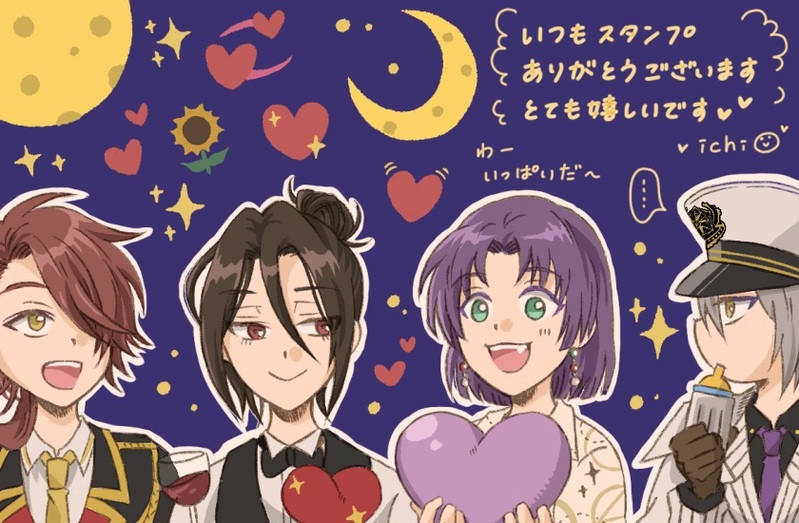いつも色んなスタンプありがとうございます。本当に嬉しいです🙏✨可愛いかったり面白かったり、キャラや絵にあうようなスタンプだったり、いつも見ていてとても楽しいです😊あとアルファベットの組み合わせメッセージもびっくり感動しました!本当にありがとうございます。これからもまったり楽しく落書きしていこうと思うので、またふらっと覗きに来て頂けたら嬉しいです🌙✨