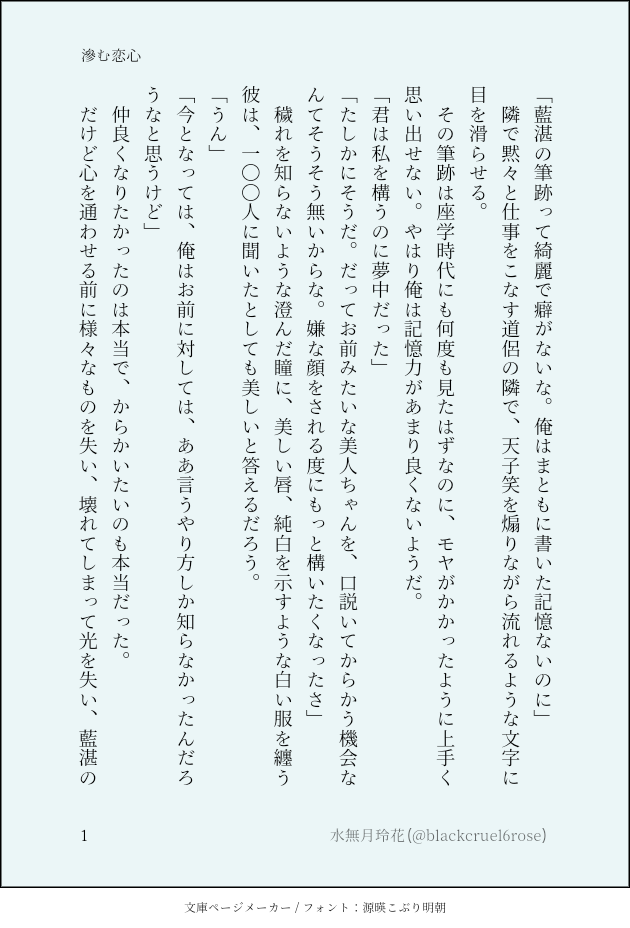 水無月玲花 @blackcruel6roseよろしくお願いいたしますฅ( ˘ω˘ )ฅ忘羨か高律のSSを備忘録的に乗せていくかと思います。 ☆quiet follow Yell with Emoji POIPOI 6