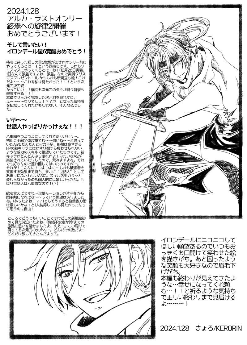 1/28終焉への旋律2で置いていた無配イロンデール星6覚醒おめでとうペーパーです