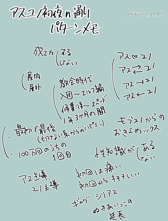 描いてる原稿が初夜ネタなのでアスユノ初夜メモ(字ばっかり、走り書き)