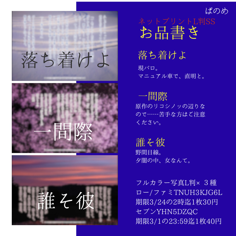 ぱのめ☆quiet followMENUぞ~はん組オンリーイベント!!!!!ネットプリント(フルカラーL判写真SS)番号は画像内にあります↓↓ Tap to full screen (size:1080x1080).Repost is prohibited Let's send reactions! freqpopularsnackothersPayment processing Replies from the creator Follow creator you care about!☆quiet follow ぱのめDONE「アリコにリアコ」展示その5こちらは前回のarkオンリーイベント「ありったけのこの想い」でネップリ登録していた短編×3種の展示です。前回印刷してくださった皆さま、本当にありがとうございました!パスワードはイベント会場内のサークル🔮リンクをご覧ください 3 ぱのめDONE「アリコにリアコ」展示その43種類(クマバチ&人魚&ぬりかべ)の夢妄想観察日記?となっております??ゆるーくお楽しみ(お許し)いただけましたら幸いです……パスワードはイベント会場内のサークル🔮リンクをご覧ください! 3 ぱのめDONE「アリコにリアコ」展示その3発言まとめメーカーでアニメ&原作&妄想何でも詰め込んでます!!ゆるーい気持ちでご覧ください……パスワードは会場内のサークル🔮リンクに掲載中です! 4 ぱのめDONE「アリコにリアコ」展示その2原作読み直した後、発言まとめメーカーでark君の事をいろいろ妄想?感想?観察?してみました!パスワードはイベント会場内のサークル🔮リンクをご覧ください!! 4 ぱのめDONE「アリコにリアコ」展示その1書き下ろし現パロark夢短編×4種パスワードは「アリコにリアコ」イベント会場内のサークル🔮リンクをご覧ください!! 4 ぱのめDONE・2024/11/09「恋路の彼方に一波あり」イベント展示です・「幻のようなtn夢」と「歳を重ねた夢主のtn夢……?」の二つです・パスワードはイベント開催日を4桁で! 2 recommended works tadano_gomashioDOODLEogtに拷問される夢主 #金カ夢 みんみDOODLE新人夢主(部長に一目惚れ)とやたら目が合うし何か言いたげな顔をするので悩み事でもあるのかと声をかけるも、まさか自分が原因とは知らない部長。(少しネタが降ってきたので夢イベントまでにショートマンガ描くつもり) よぞらMEMO※2枚目、夢主注意※式神パロディらくがき。夢主の先祖に本名バレして調伏されて以来、夢主の一族にフンフンお仕えしてる元鬼のヴァ。一緒に⛩暮らししてる夢主は自分の嫁だと思っている。畑の野菜ばかり食べる嫁が心配で野山の獣を狩ってくるヴァ。最近ではお花も貢ぐ。まだ力が未熟な夢主を口説いては毎日のようにイチャイチャする。夢主は「式神は普通こんな事しないハズ…おかしい…」と思いながらも丸め込まれている。 2 🐈ゆめPROGRESS「尾様も血管青いんですね…!」「…おい、誰と比べてるんだ?」https://twitter.com/yumerosym100#夢 #金カ夢 #knkmプラス #金カムプラス #ogt夢 #尾夢 #尾 #ogt 🐈ゆめDONE試合中のバレー部セッターogt先輩を全力で応援!/🏐尾夢・現パロ/※台詞ありhttps://twitter.com/yumerosym100#夢 #金カ夢 #knkmプラス #金カムプラス #ogt夢 #尾夢 #尾 #ogt 🐈ゆめDONEバレー部セッターogt先輩の試合を全力で応援したら、大活躍の末に勝利したogt先輩が頭を撫でてくれました^^/🏐尾夢・現パロ/https://twitter.com/yumerosym100#夢 #金カ夢 #knkmプラス #金カムプラス #ogt夢 #尾夢 #尾 #ogt 🐈ゆめ1111全力でポッキーゲームをしてくれる尾様/現パロhttps://twitter.com/yumerosym100#夢 #金カ夢 #knkmプラス #金カムプラス #金カム夢 #ogt夢 #尾夢 #尾 #ogt #ポッキーの日 #ポッキーゲーム momen8_dDONE神様に隠してもらおうとする子供とtksmのお話。 3964 Quavara_mandalaDOODLE海外のスポーツ中継とかによくあるイチャついてる者を映すやつに自分達が映ってるのに気づいてめちゃくちゃ慌ててるkitとその許嫁